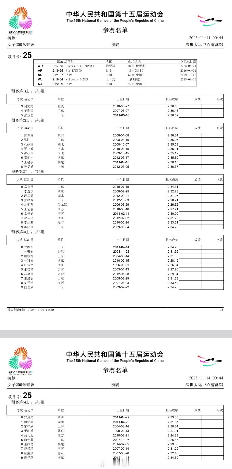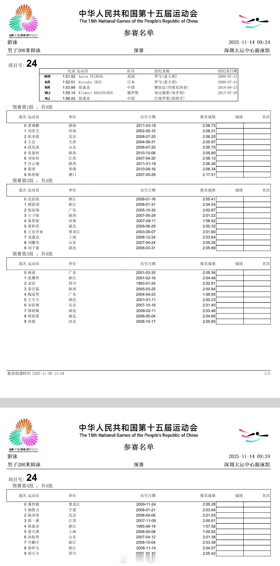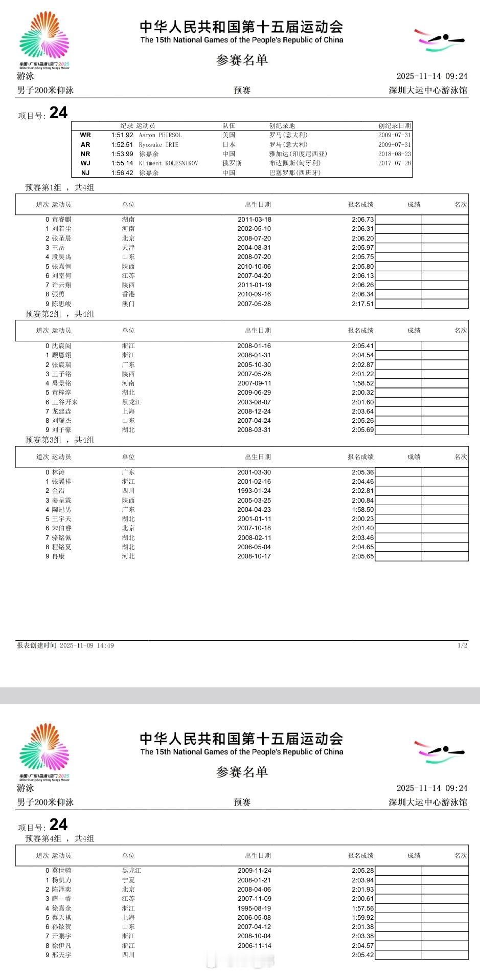 游泳🏊♂️项目第五天(11.14)预赛秩序单