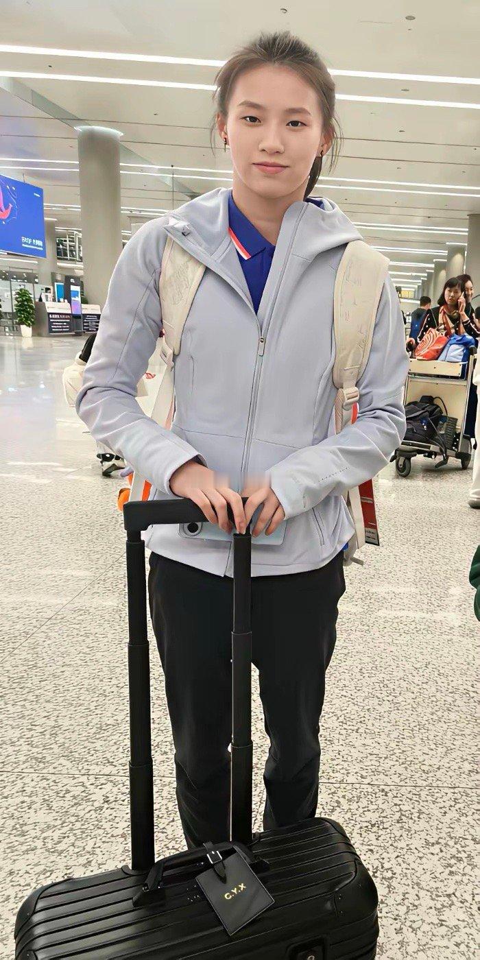 全运会夺冠后迅速返回上海的陈芋汐机场照真的好漂亮,亭亭玉立、端庄优雅,高颜值高人品的世界冠军陈芋汐