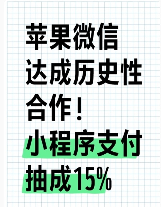 苹果从中抽取15%的分成,这一比例显著低于苹果常规的30%“苹果税”标准!双赢!