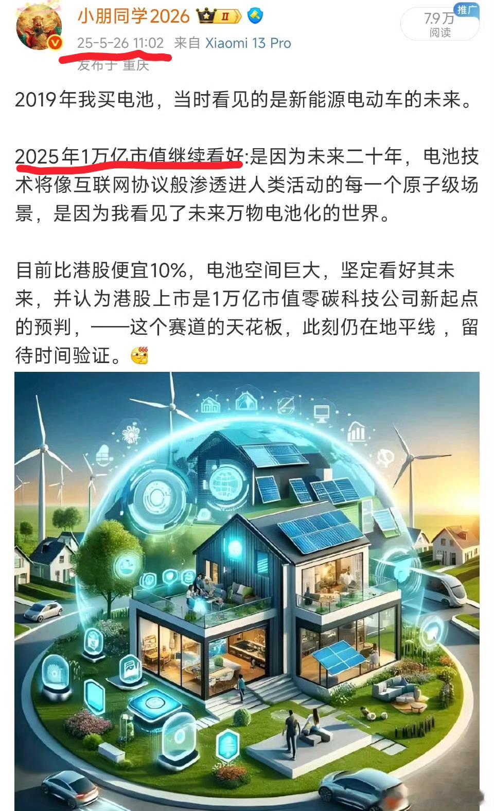 几月前说电池1万亿市值是新起点,仍然是在地平线, 然后超级重仓。没想到几个月后就快2万亿市值了,目前1.9万亿市值。1万亿市值超级重仓,为什么?因为我重新认知——电池,早已不是那个只藏在电动车“引擎盖”下的动力源。我看到的,是一个即将喷发的“能源星球”的核心!它将是储能的巨肺,吞吐着城市的峰谷电力;是重卡、船舶的绿色心脏,轰鸣在公路与海洋;是机器人、机器狗灵动的肌肉,是飞行器腾空的双翼……一个无处不在的“移动能量包”生态,正扑面而来。而其中,储能市场的爆发,更是以惊人的速度验证了我的判断,像海啸般涌来。如今,市值逼近1.9万亿,短短数月近乎翻番。但这远非终点。试想,一旦我们在未来的终极战场——固态电池上,延续如今在锂电、钠电领域的技术统治力,那眼前的万亿增长,或许真的只是波澜壮阔的序章。未来的成长空间,依然是星辰大海!