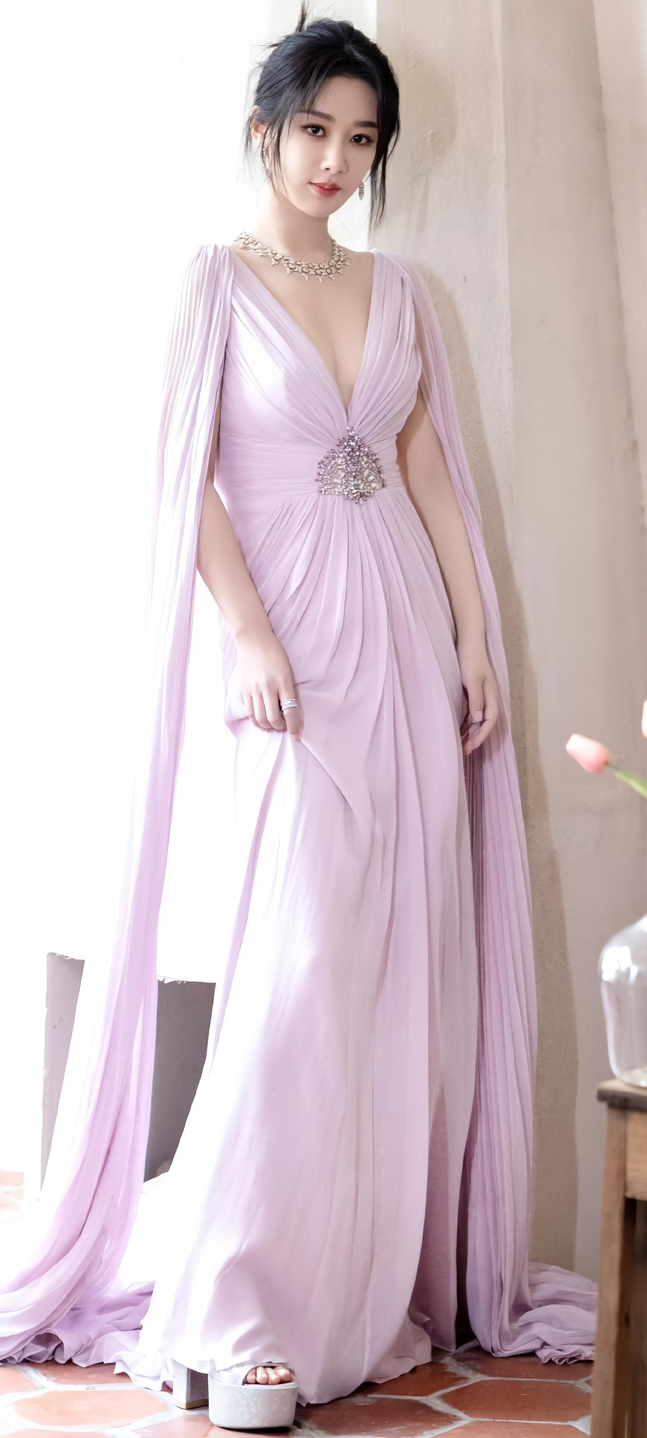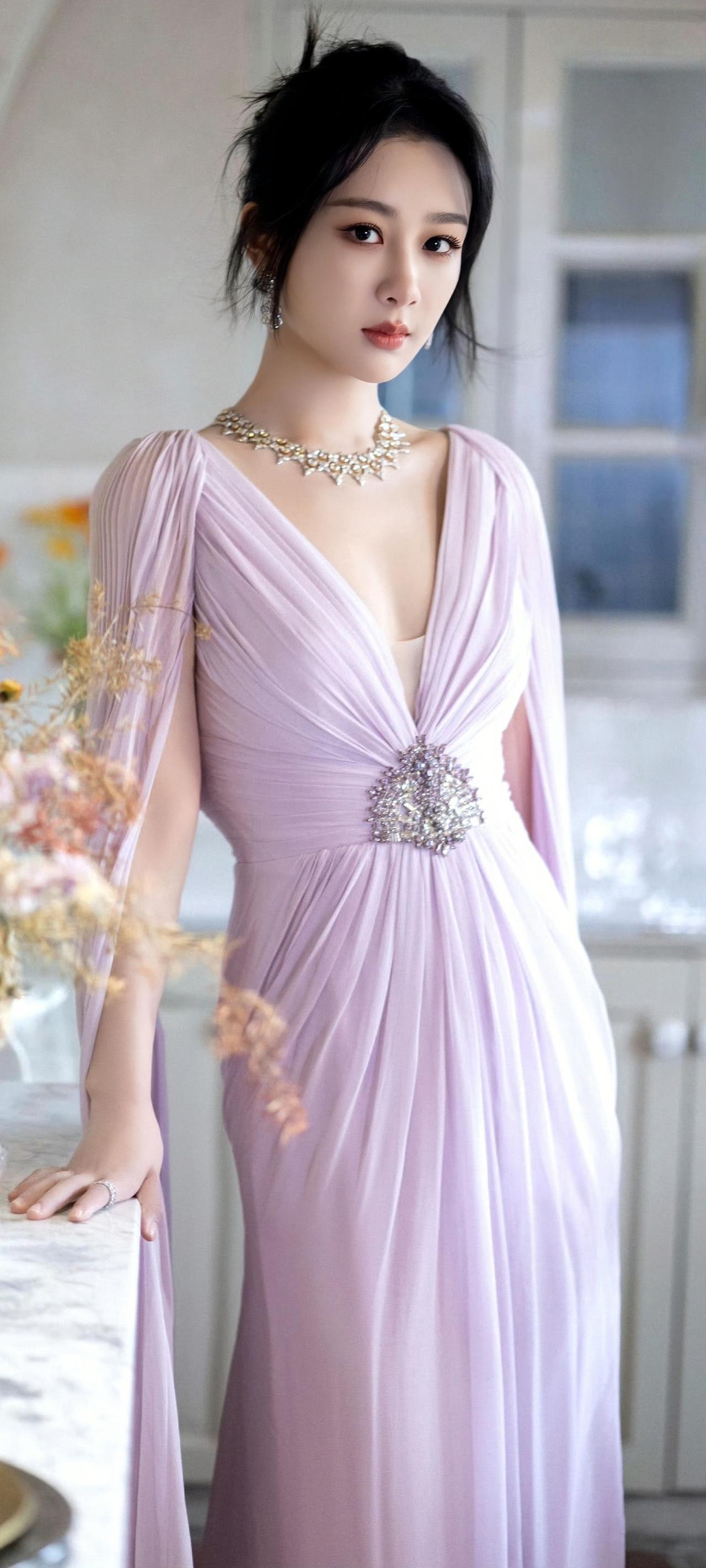 杨紫这组淡紫长裙造型,是把“温柔贵气”焊在身上了吧✨ 谁懂啊!杨紫新出的这组写真直接戳中审美心巴💘 淡紫色薄纱长裙裹出优雅曲线,深V+披风袖又仙又欲,腰间的钻饰直接把贵气感拉满~ 发丝慵懒挽起,碎发衬得眉眼更灵动,颈间的珠宝在柔光里闪得恰到好处,又甜又御的氛围真的绝了! 姐姐这状态,是迪士尼在逃公主本人没跑了👑杨紫 杨紫新造型杨紫御姐造型 女明星穿搭 淡紫长裙杀