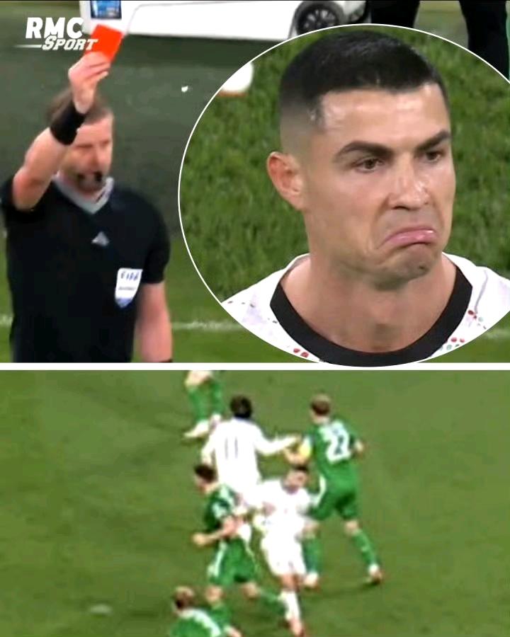 C罗这张红牌真是太无语了。 他肘击爱尔兰球员,然后朝着对手做哭状手势,裁判看完回放将他红牌罚下.... 他为什么要这样做呀,这是年轻球员才会犯的错误,真是不应该。 多说一句,梅西就不会这么做。[笑哭]