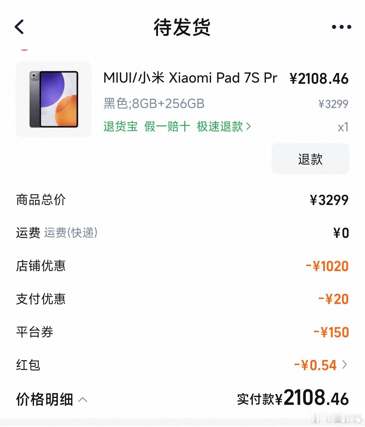 买了台小米Pad 7s Pro主要作为我的小米YU7后排娱乐屏用,标配够了。8GB+256GB,2100元,价格如何?