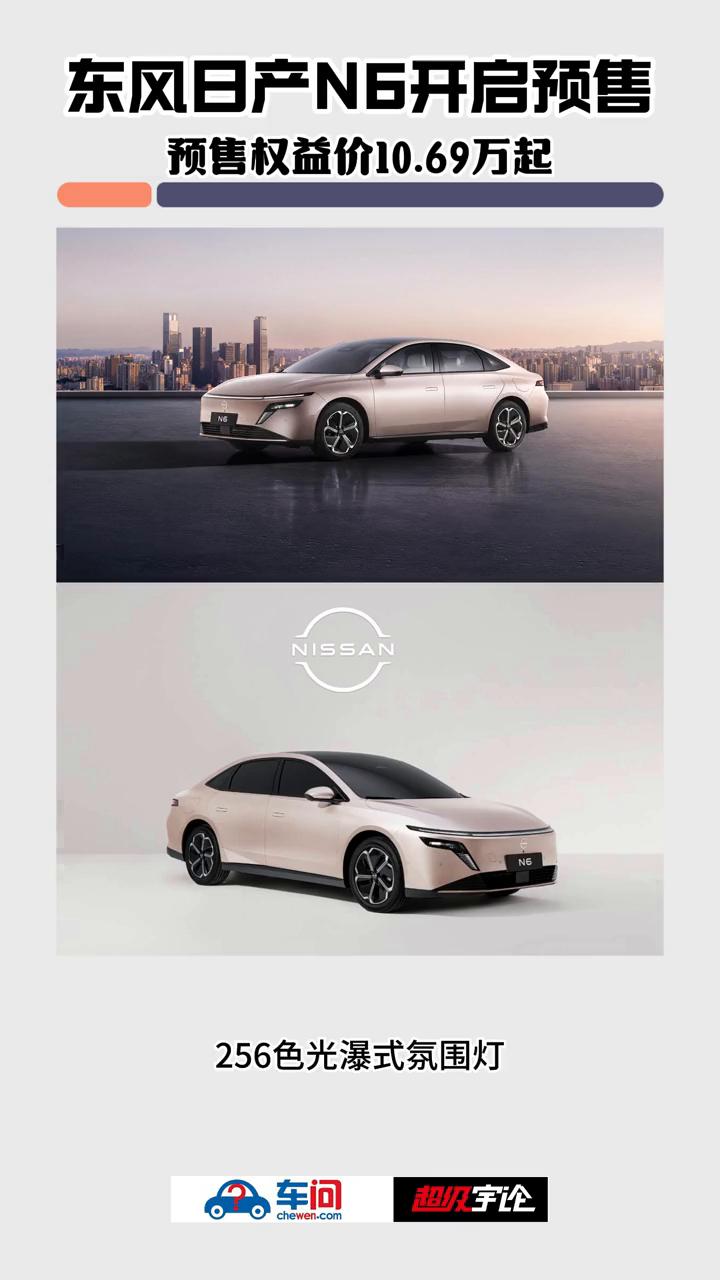 东风日产N6开启预售,预售权益价10.69万起。 车问。 11月13日,东风日产N6正式开启预售,共推出3款车型,预售价10.99-12.19万元。入门及中配车型推出预售权益价,限时价10.69-11.19万元。 ·新车外观延续家族式设计,同时是天演架构下首款插混轿车,搭载1.5L插电混动系统,纯电续航里程180km。 ·外观方面,新车采用了全新的家族化设计语言,车头为分体式大灯组,上方采用贯穿式LED灯带设计,下方主光源依旧延续了折线式大灯设计,车标仍然镶嵌在前保险杠上。新车长宽高分别为4831×1885×1491/1494mm,轴距为2815mm,新车还配备了隐藏电动门把手。 ·新车内饰采用360度环抱式样座舱,配备悬浮式中控屏和液晶仪表,256色光瀑式氛围灯,还提供手机支架扩展口等。新车提供深浅两种配色方案,并应用了怀挡式换挡机构。 ·日产N6尾部设计延续日产溜背式短车尾造型风格,提供贯穿式尾灯组造型和深色灯罩,尾灯组中央为可发光NISSAN字母标识。 ·动力方面,东风日产N6搭载一台1.5L发动机组成的插电混动系统,发动机最大功率75kW,搭载了峰值功率155kW驱动电机,标配同级最大21.1kWh电池,全系标配180km纯电续航,百公里亏电油耗低至2.79L。