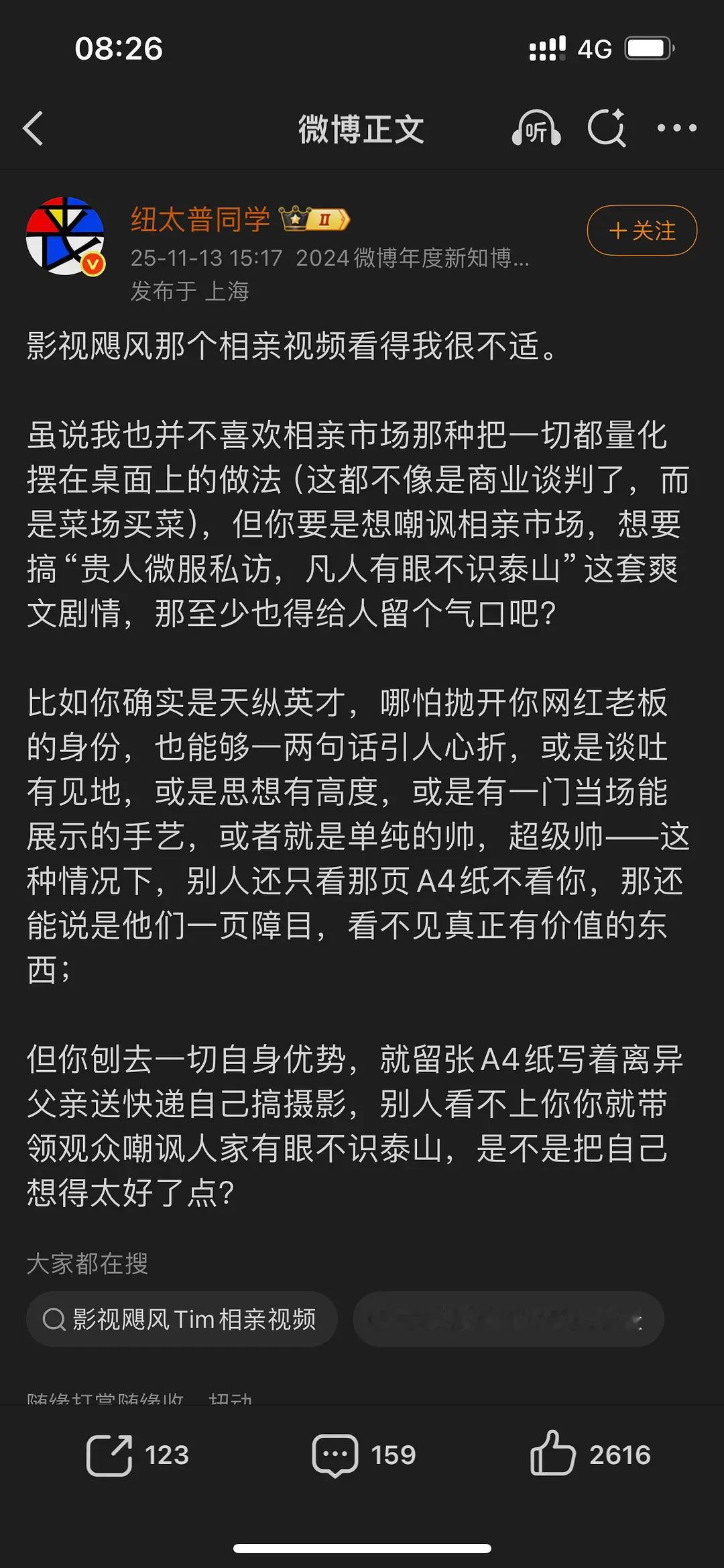 影视飓风最新视频翻车了😮讲的是相亲角的内容 看的不舒服的人挺多的