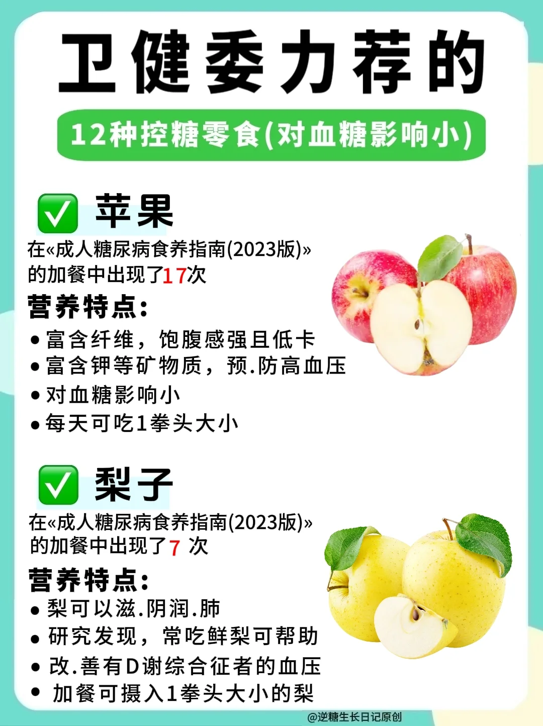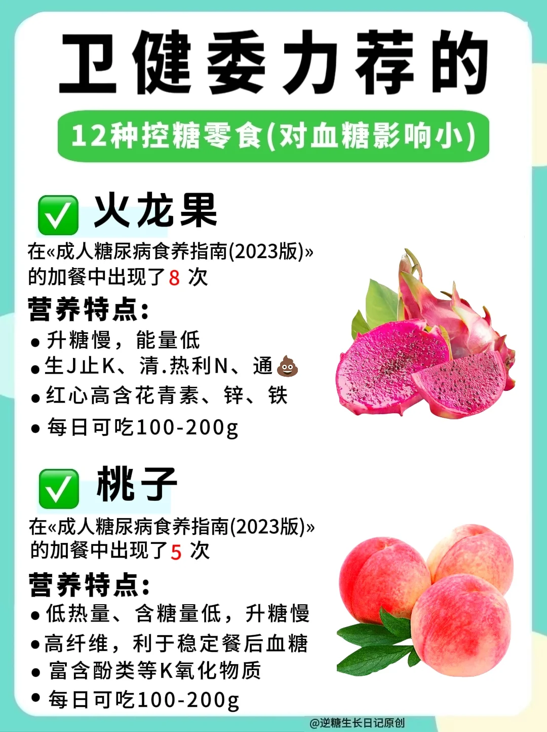 卫健委发布的«成人糖尿病食养指南(2023年版)»四季控糖食谱中,有84天的加餐零食里,其中有❶❷种食物多次出现,这些食物饱腹感强,营养价值高,对血糖影响小,控糖的家人们可以试试这❶❷种零食!