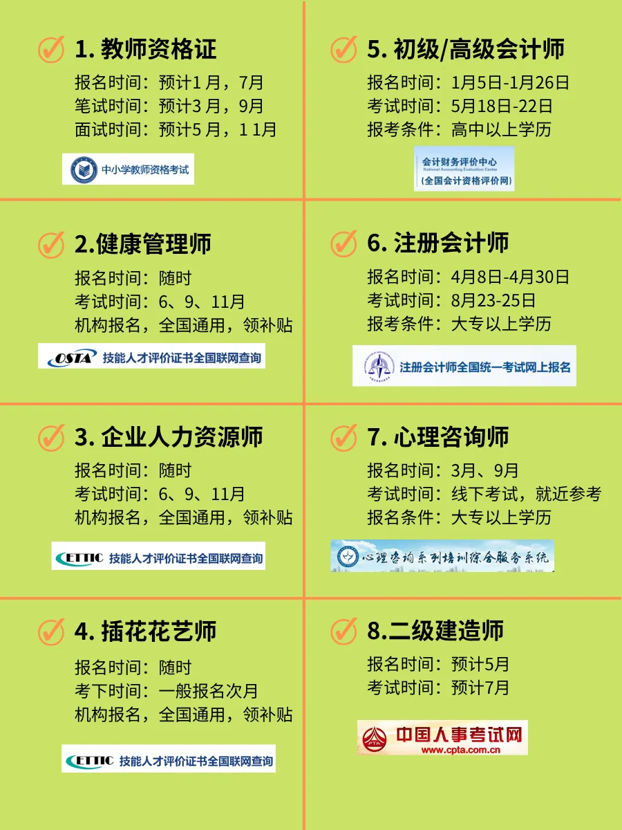 2025年考证时间表!提升自己,升值加薪!