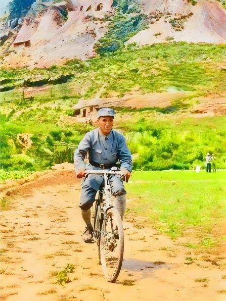 这张摄于1938年春的照片,定格了八路军总司令朱德骑自行车行进在延安杨家岭附近土