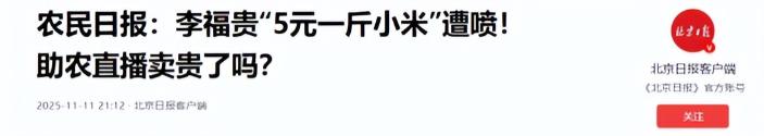 千万网红李福贵 “割韭菜”? 10分钟卖光3.4万单小米,本该被夸,却因“谷子收5块太贵”“发货地不对”被追着骂。 这个总把笑挂脸上的姑娘,真心帮农户卖粮,咋就成了众矢之的? 先来说说李福贵。她是98年出生的,打小就扛起了生活的重担,好在村里的老人们对她特别好,让她在觉得日子过不下去的时候,心里头还能有一丝温暖。 走红后,她没想着变现捞金,反而惦记着报恩——太行山区地形复杂,农户种的谷子分散,交通不便导致粮食要么低价贱卖,要么烂在手里。 所以呢,她就一家一家去收谷子,装满一车又一车运出山,想着借助电商平台给农户们把产品的销路打开。 开播前她满心忐忑,即便网友们喊着“一定支持”,她也只当是安慰。 可没想到,37.8元5斤的小米,10分钟就被抢光3.4万单,这份惊喜还没来得及消化,质疑声就铺天盖地。 “别家谷子才三四块一斤,她收购价就5块,纯属扰乱市场!”“发货地是山西不是河南,根本是挂羊头卖狗肉!”负面声音不断发酵,李福贵瞬间被推上风口浪尖。 但真相并非网友揣测的那样。 熟悉山区种植的人都知道,太行山区种谷子用不上机器,播种、收割全靠人力,不仅产量低,成本还高。 而且这里远离污染,小米是天然有机品质,口感和营养本就与普通小米不同,优质优价本就无可厚非。 有网友算过一笔账,加上运输、加工、分装、快递等成本,李福贵5块钱收谷子、7块多一斤卖,不仅没赚钱,反而可能亏本。 别家三四块收、七块卖,利润都被中间商赚走;而她让利于农户,却被指责“高价”,实在委屈。 至于发货地争议,核心也是为了压缩成本。 集中在山西大仓库发货,能省下近一半快递费,对于几乎无利润的助农项目来说,这是保障农户利益、让消费者更快收到货的最优选择。 只是这些隐情没来得及提前说明,才引发了误解。 实际上啊,这场争议往深了看,就是助农直播行业出现了信任方面的问题。 这些年,不少人打着“助农”旗号炒作,“水果滞销”的悲情戏码反复上演,主播压低收购价、抬高售价,把“助农”变成“坑农”,让消费者渐渐失去信任。 而且啊,由于价值认知出现偏差,好多人都习惯通过包装来评判商品值多少钱,却没注意到产地不同、耕种方法不一样,这些都会造成商品有差异。 拿普通小米的价格对比有机小米,自然觉得李福贵卖得贵,却没意识到背后农户的辛劳与产品的品质。 好在央媒及时发声,点出争议背后的真相:李福贵的善意不该被误解,扎根农村的助农者更该被善待。 网友们慢慢也把真相看明白了,都纷纷站出来为她说话,表达支持。 当真心助农被质疑“割韭菜”,受伤的不只是网红,还有背后盼着粮食卖出好价钱的农户。 要是像李福贵这样的人都得遭人指责,以后还有谁乐意在乡村扎根,去帮衬农民呀? 希望往后再遇到类似事件,大家能多一份耐心、少一份揣测,给助农者多一点信任与支持。 毕竟,像李福贵这样不忘初心、真心为农户着想的人,值得被温柔以待。