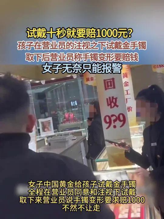 广东,女子带孩子逛街时,被一款黄金小手镯icon吸引,便让孩子试戴。谁能想到,取手镯时,营业员突然拉住她不让走,还称手镯变形,要求女子赔偿1000元或者买下。可这试戴过程不到10秒,手镯大都没碰到孩子皮肤,全程在营业员眼皮底下,女子觉得被讹,理论无果后报了警,营业员竟还理直气壮地说必须赔,这事可太离谱了!这起事件确实令人感到震惊和愤慨。根据你的描述,事件的核心问题在于女子在试戴黄金手镯时,营业员突然阻止她离开,并声称手镯变形,要求赔偿或购买。这种行为涉及几个方面的问题: 试戴行为的合理性:通常,珠宝店允许顾客试戴商品,以便确认是否购买。试戴时间一般不会很长,且不会造成商品明显损坏。女子试戴时间不到10秒,且手镯没有碰到孩子皮肤,基本可以判断没有造成损害。 营业员的行为是否合法:营业员阻止顾客离开,且要求赔偿,可能涉嫌强制索赔或敲诈勒索。尤其是在没有明确证据证明手镯被损坏的情况下,强行索赔是不合理的。 证据和沟通:女子在无法达成一致时选择报警,是正确的做法。警方可以介入调查,确认手镯是否真的变形或受损。 消费者权益保护:消费者有权在试戴商品时享有合理的空间和保护,商家不能以“变形”为由随意索赔,否则容易侵犯消费者权益。 建议: 保留证据:女子应保存试戴前后的手镯照片或视频,作为证据。 报警处理:已经报警,警方会根据现场情况和证据进行调查。 向相关部门投诉:如果确认营业员存在不当行为,可以向消费者协会或市场监管部门举报,维护自身权益。 理性沟通:在类似场合,建议保持冷静,理性应对,避免激化矛盾。 总结: 这起事件反映出部分商家在维护自身利益时可能采取不当手段,消费者应依法维权。商家应以诚信经营为基础,尊重消费者权益,避免类似事件再次发生。宝宝镯子 黄金小手镯广东女子带孩子买手镯买金镯子 金店手镯 。
