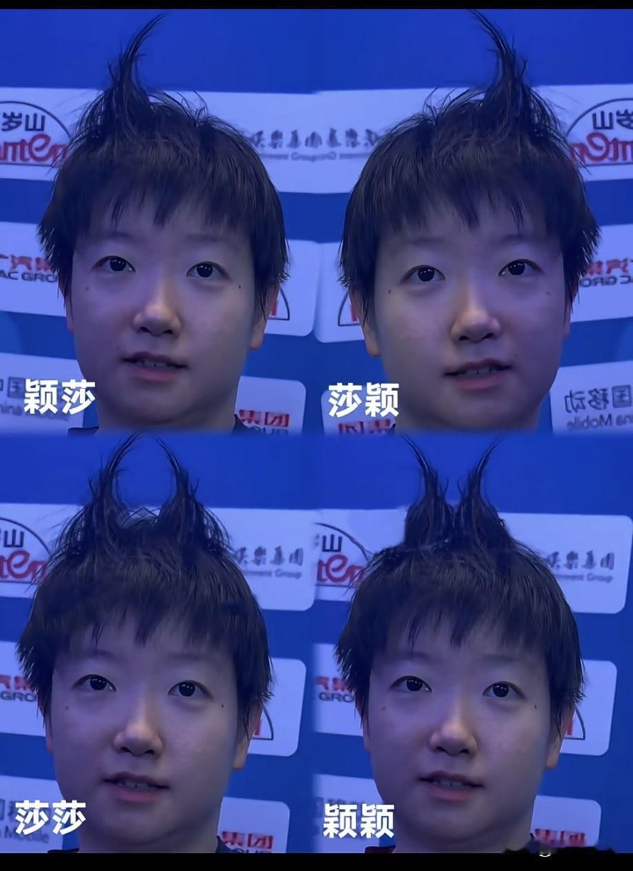 王楚钦和孙颖莎不愧为耶耶和猫猫的别称。图三的王楚钦的头发像狗狗耳朵的形状,图三孙颖莎的发型酷似炸毛的猫咪,很可爱呀。[开怀大笑]