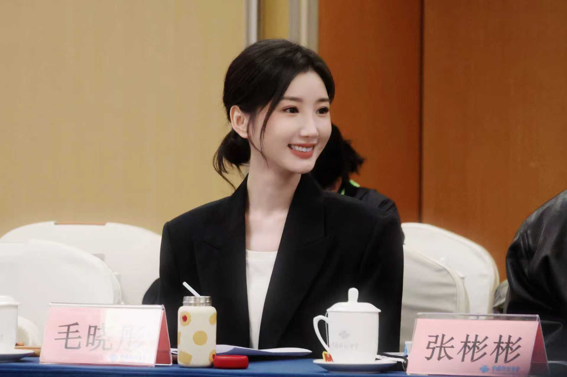 毛晓彤出席电视剧《余生有涯》研讨会,黑色西装低盘发造型优雅知性,体制内女友既视感