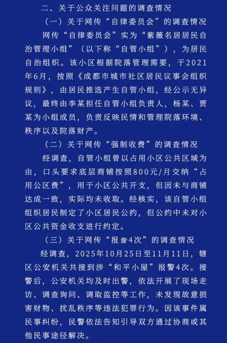 马库斯成都和平小屋变得热闹起来,到里面参观的人熙熙攘攘,外面还有人巡逻。 我觉得成都联合调查组的通报介绍的非常详细,说明他们的调查工作非常仔细认真。 虽然马库斯还有一些异议,但是在有关部门的努力下,基本可以平息此事。 而那个“自律委员会”,原来只相当于一个业主委员会。 网上也有附近的店主发视频,声称与这个委员会发生过矛盾,现在来看,也就相当于业主委员会与租户之间的问题。 好消息就是更多的人知道了这个和平小屋,它所倡导的理念,可以被更多人所了解。