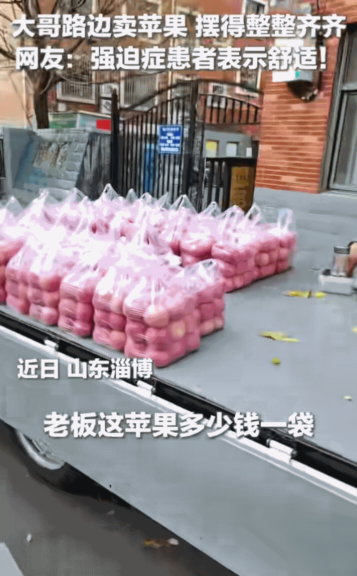 “不光山东人民知道了,全国人民都知道了! ”山东淄博 ,一名大哥卖的苹果让网友感叹:不喜欢吃苹果的,看着都想买一个袋。 卖苹果的大哥曾经当过兵 。他把自己卖的苹果整整齐齐的放在塑料袋里 。好像是当兵叠的被子一样 ,你见过被子叠成豆腐块的,那你见过苹果被摆放成豆腐块的吗 ? 此事引起网友热议,买一袋,晚上大哥难受了,少一袋了,不整齐了。 通过这些摆放整齐的苹果,就知道大哥平日里,也一定是一个做事情讲究的人 。大哥有当兵的经验,所以他做事情保留了原来的习惯。 希望大哥的苹果更多的人看到,祝大哥,苹果大卖 。 晒图笔记大赛 (信息来源:央视新闻)