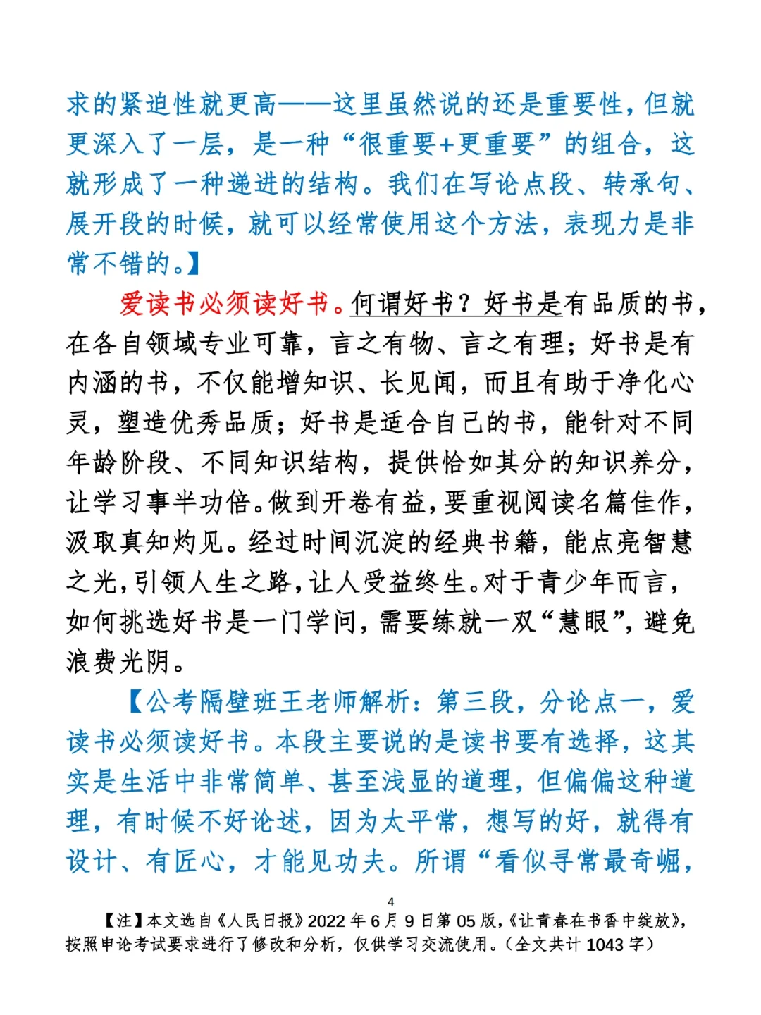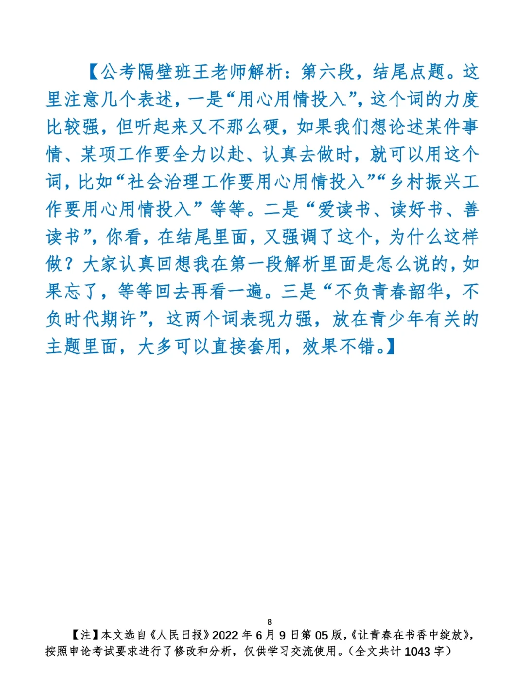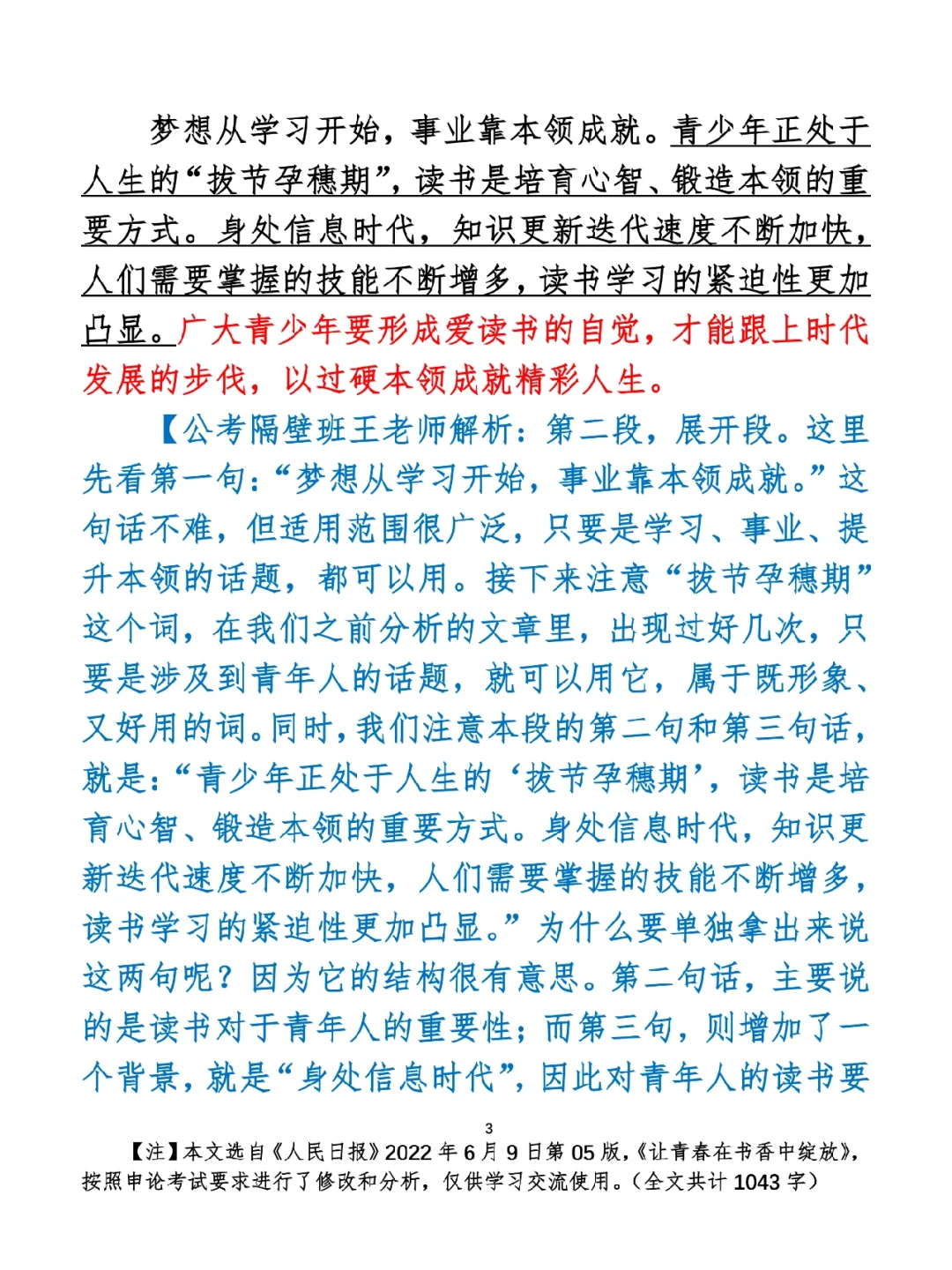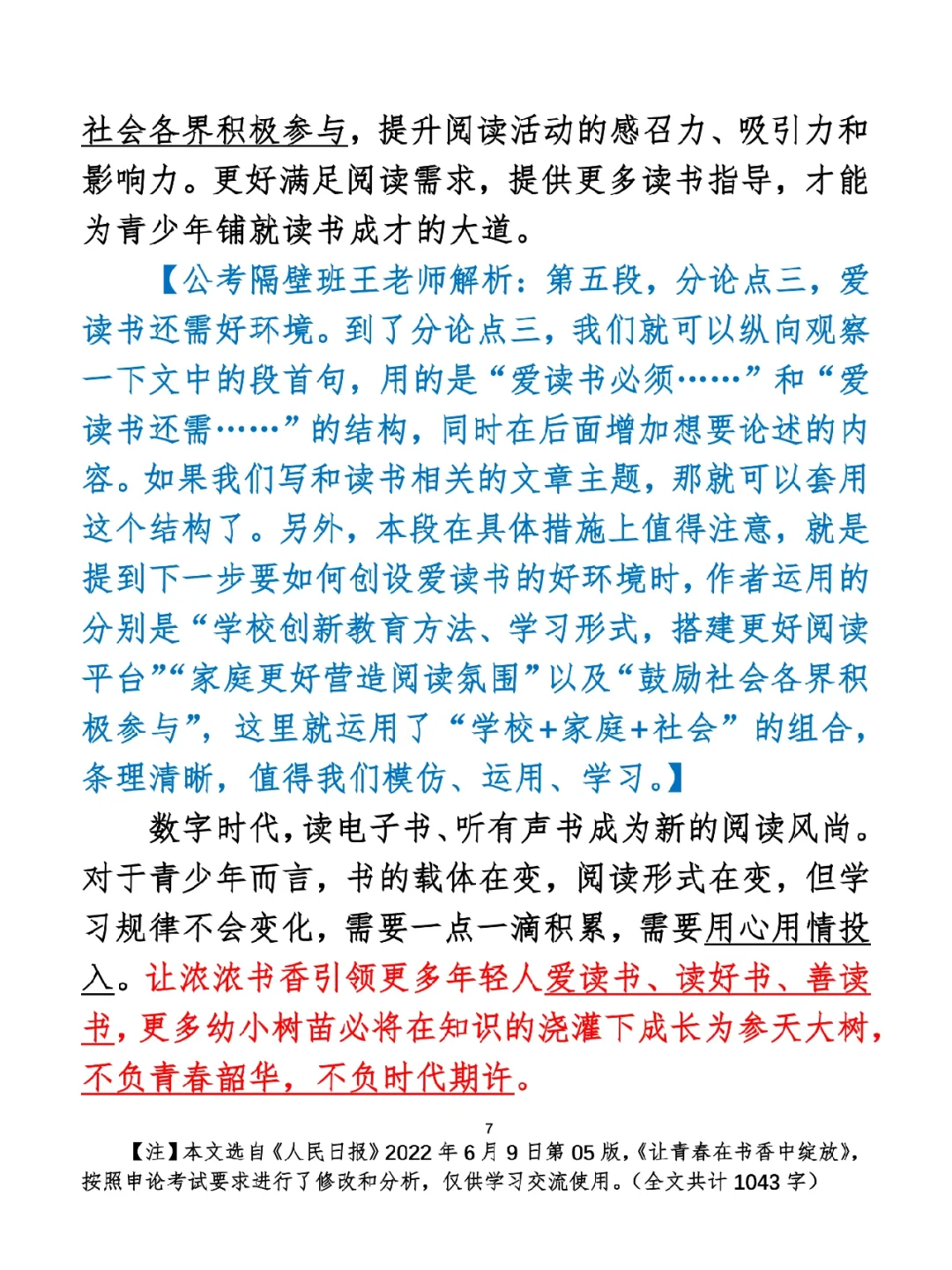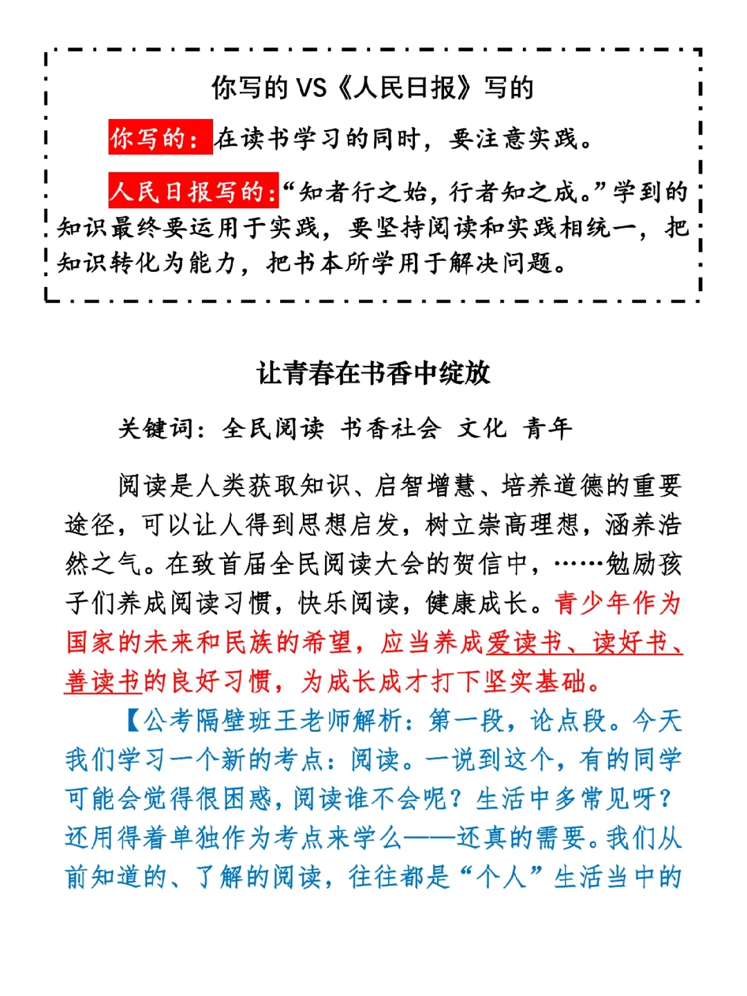 1.如何抄写:每天的抄写文章以图片形式发在“公考隔壁班王老师”账号,红色字是重点句和结构句,黑色字是正文,蓝色字是解析,大家抄写时不必抄蓝色字。建议先通读全文(包括蓝色解析部分),做到心中有数再开始抄写,效果会更好。