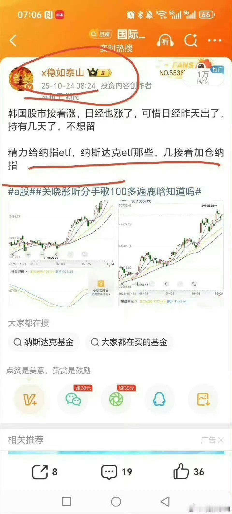 纳指类十月中加仓,大涨一周多,高位减仓,大跌又进!!!又涨了一周这次大跌两天,周一合适也加些!!!