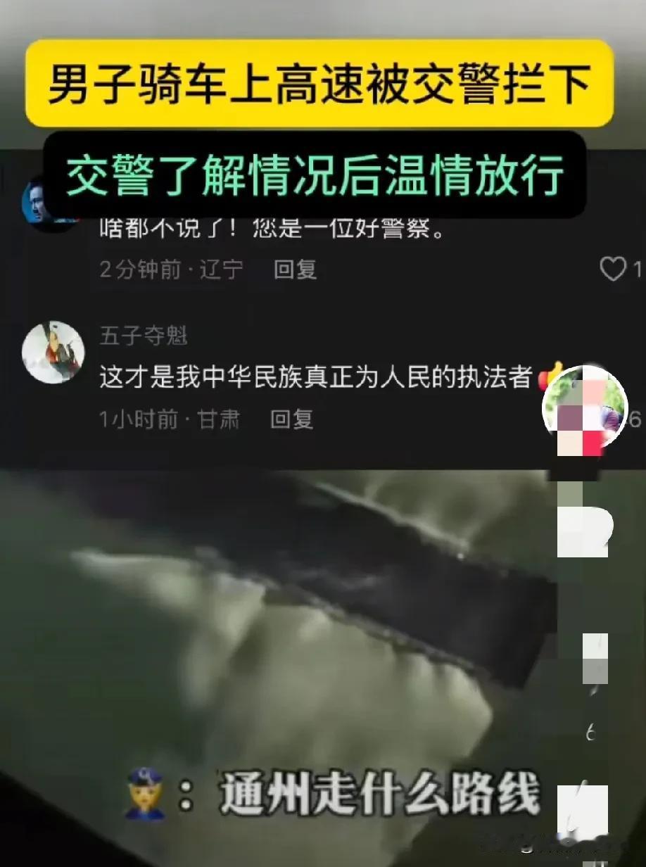 泪目!北京一男子骑摩托上五环,被交警拦下后,男子竟然崩溃大哭:警官,我妈没了!我要看我妈去!我不是故意的我着急!交警听到这话后,到了嘴边的批评立马咽回去,并下意识收回了警棍,询问道:“回哪?” ​男子:“通州” ​交警:“走什么路线” ​男子:“我走的五环到京津高速!” ​交警:稍等一下,我给你通报一下! 男子姓赵,今年三十六岁,在房山一家建材市场开货车拉货,母亲独居在通州的老旧小区。当天中午他刚卸完一车瓷砖,口袋里的手机就急促地响起来,是社区网格员打来的,说邻居发现他母亲倒在阳台,急救人员赶到时已经没了生命体征。 挂了电话他浑身发软,建材市场离通州四十多公里,正值午间车流高峰,打车软件排队到一百多号,身边只有平时拉货代步的摩托车。他脑子一片空白,顾不上想五环禁摩的规定,翻身上车就往通州冲。 交警拿着对讲机快步走到路边,手指按着通话键语速飞快:“指挥中心,五环主路K18处,有摩托车驾驶员亲属离世,急需前往通州,计划经京津高速通行,请求沿途各岗亭予以放行,注意引导避让。” 对讲机里传来明确回应后,他转过身走向还在抹眼泪的男子,语气缓和了许多:“路线我跟指挥中心报过了,京津高速入口那边会有同事示意你怎么走,路上别慌,注意安全。” 男子点点头,想开口说谢谢却哽咽着发不出声,脚刚踩上踏板又停住,从口袋里摸出皱巴巴的驾驶证递过去:“警官,我知道闯禁行不对,等我处理完我妈的事,回来接受处罚。” 交警把驾驶证推回他手里,轻轻拍了下他的肩膀:“先去见老人最后一面,处罚的事以后再说。”这话让男子再也忍不住,眼泪砸在摩托车的油箱上,几秒钟后他拧动车把,引擎声里带着哭腔往前方驶去。 这位交警在岗六年,处理过不少摩托闯禁行的案子。有的驾驶员故意用贴纸遮挡号牌,有的闯禁行被查还强词夺理,他从没手软过,该罚款罚款,该记分记分。 但这天他没提一句处罚的话,他清楚北京交管部门早有规定,有证据证明救助危难或紧急避险造成的交通违法,可不予处罚,男子的情况完全符合这条规定。更重要的是,他见过太多生离死别,知道“见最后一面”这几个字对一个子女的分量。 男子的摩托车一路向南,过了五环互通桥,果然看到高速入口的交警抬手示意他优先通行。风从耳边刮过,他想起上周还给母亲打电话,说要带她去吃她最爱吃的酱肘子,母亲在电话里笑,说等他忙完这阵再说。 现在这个约定永远兑现不了了,他越想越难受,却不敢放慢速度,他怕晚一步连母亲的遗容都见不上。 其实在北京的交通执法里,这样的柔性处置并不少见。不是法规有弹性,而是执法者心里装着人情。那些刻板的条款背后,本就藏着维护民生的初衷,遇到特殊情况灵活变通,恰恰是法规温度的体现。要是机械执法,当场扣车罚款,看似守了规矩,却会凉了人心,更违背了执法为民的根本。 男子最终顺利赶到了通州的小区,社区工作人员和殡仪馆的人已经在门口等他。他没来得及回头看一眼来时的路,但他记住了那位交警收回警棍的动作,记住了对讲机里那句“予以放行”。这些细节会留在他心里,让他明白规则之外,总有一份体谅在。 法律从来不是冰冷的条文,它的刚性需要人性的柔性来滋养。交警的举动没有突破法规底线,反而让公众看到了执法的温度与尺度。这种平衡,既维护了交通秩序,又传递了社会善意,这才是执法该有的样子。 各位读者你们怎么看?欢迎在评论区讨论。
