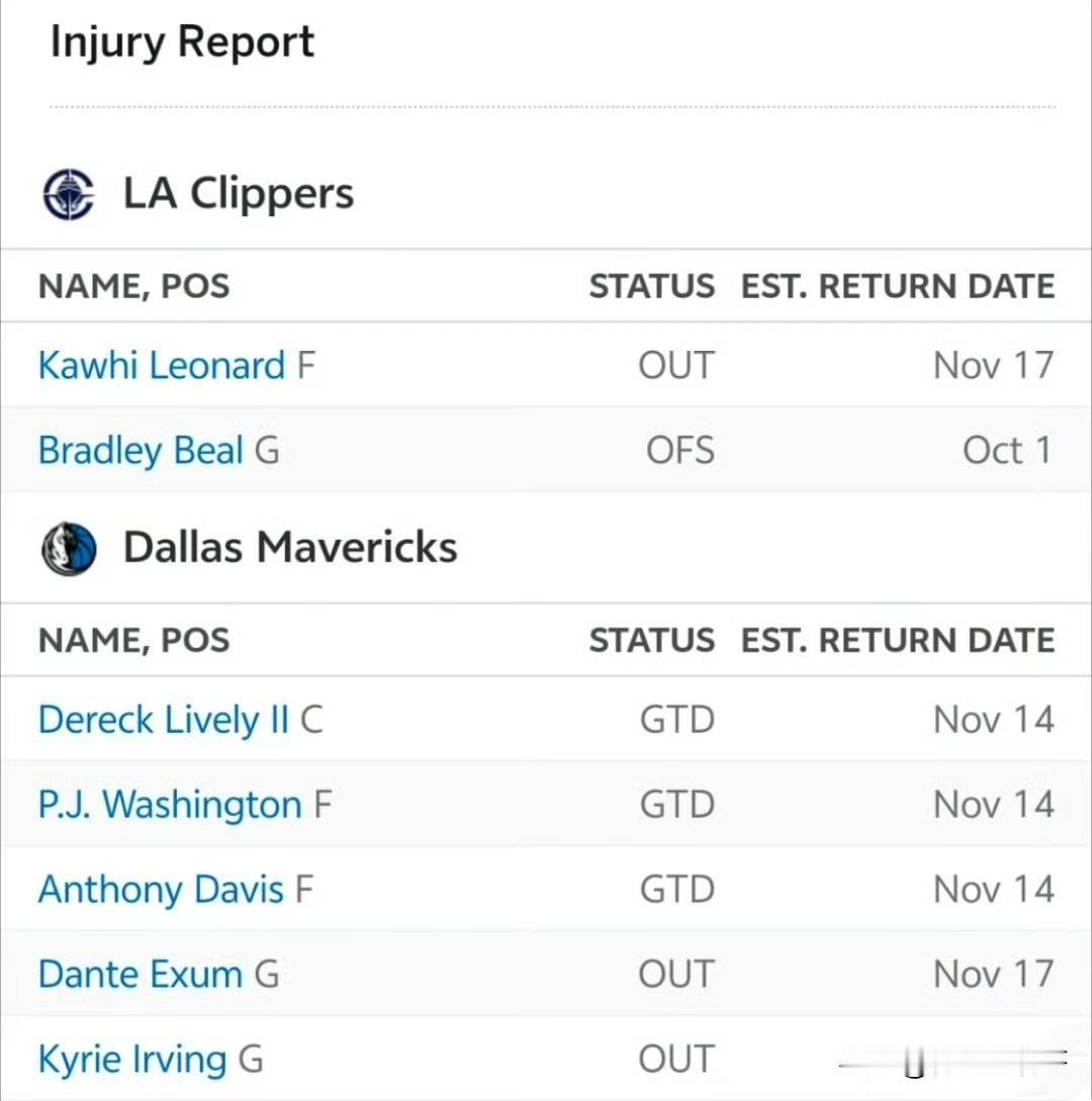 莱夫利对阵快船复出!!!快船vs独行侠比赛预测,快船被看衰! 北京时间11月15日周六上午九点半,快船来到了达拉斯客场挑战独行侠,这两支球队目前情况差不多,都是伤病满营外加连续输球,今天是他们双方最重要的一场比赛,谁输了谁就可以原地解散重建了。 本场比赛,独行侠中锋莱夫利确定复出,浓眉和华盛顿应该大概率还是不打了。 弗兰克&泰伦卢:为什么选择和我们复出,你是特意针对我俩的吗? 莱夫利:谁让就你们最菜呢! 快船虽然只有伦纳德和比尔不打,但是他们打的很乱,没有章法也没有防守,这也是他们长期输球的原因。 今天这场比赛大家可以关注一下,准时观看比赛,预计会很精彩的。 快船 快船队 快船队阵容 独行侠 达拉斯独行侠 独行侠vs快船