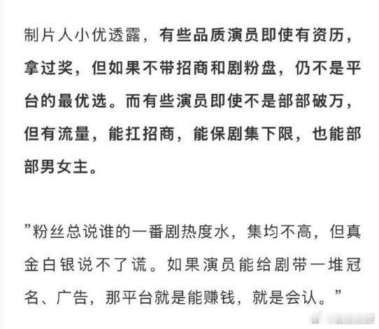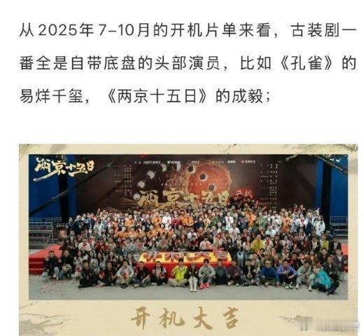 业内人士谈过会标准,说平台要找的一番头部,是真实有流量,能扛招商的演员,这相当于一个演员的“投资回报比”,成毅的《两京十五日》就是古装剧一番自带底盘的头部演员,有没有实力,业内人士会告诉你,成毅就是自带底盘的头部演员,还有谁是不知道的呢,期待成毅的新剧