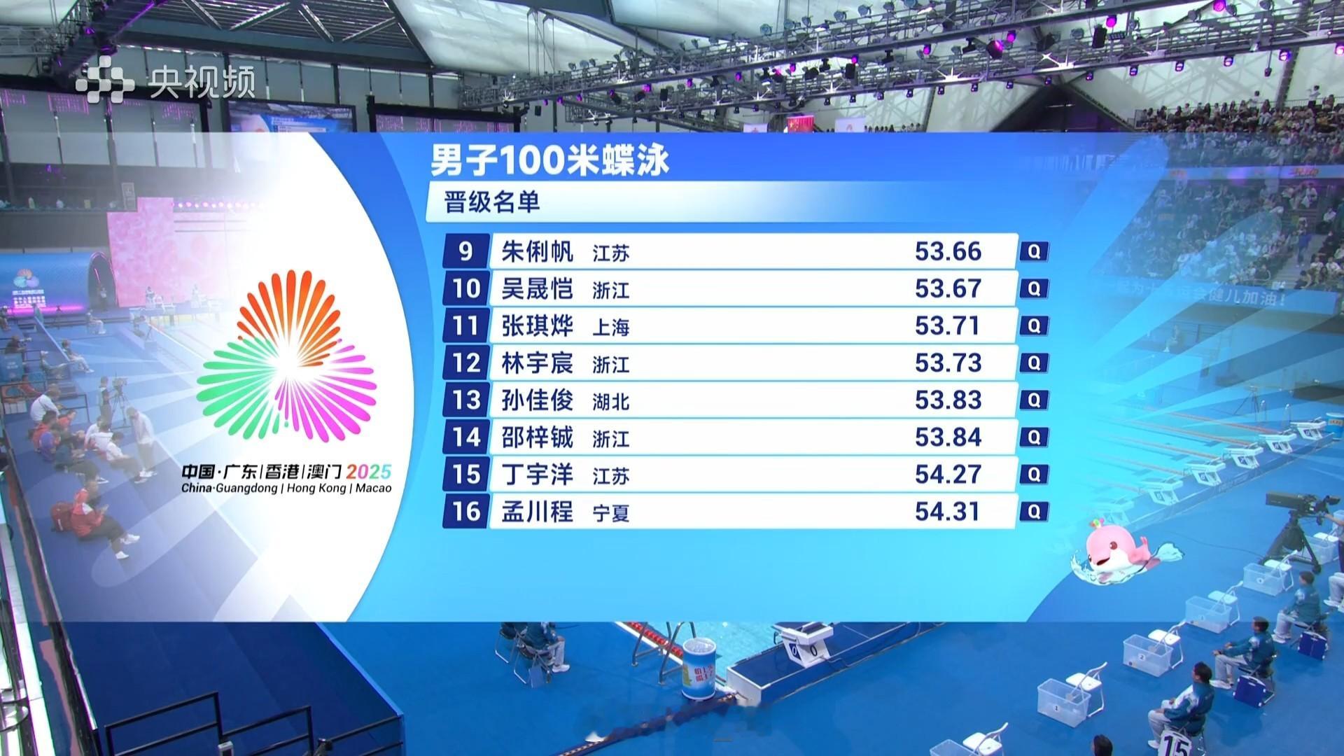 男100蝶预赛王长浩 52.21徐放 52.66陈俊儿 52.83李泰裕 53.09沈加豪 53.22洪金权 53.45王曦喆 53.45牛广盛 53.61朱俐帆 53.66吴晟恺 53.67张琪烨 53.71林宇宸 53.73孙佳俊 53.83邵梓铖 53.84丁宇洋 54.27孟川程 54.31