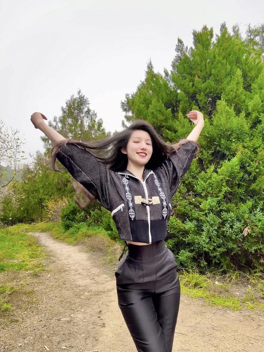 这组穿搭堪称运动风天花板!灰色短外套利落显高,蓝色瑜伽裤塑形百搭,白运动鞋轻松提