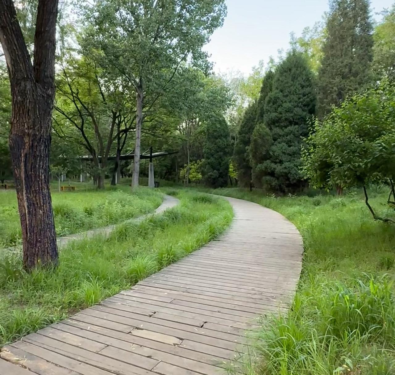 天然氧吧,枝繁叶茂,满是草木清香,还能听鸟鸣白噪音。清晨或日落来最佳,空气清新、人少安静,可沿跑道漫步,途中还有健身器材区能活动。现在来超凉快,记得喷花露水防蚊虫~
