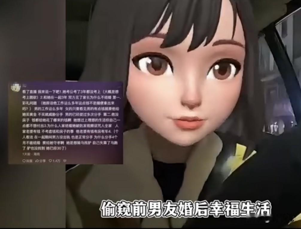 “恭喜您全家!”‼️女生吐槽前男友闪婚,阴阳怪气遭全网怼 你可以幸福,但是不能比我过得更幸福。近日有个集美在网上吐槽哭诉前男友,视频下评论区都爆了。女生讲述自己与相恋3年的男生分手没多久就相亲去了,4个月时间就光速订婚了。字里行间全是委屈。本以为是什么渣男无缝嫌弃的故事,深入了解后压根不是那么回事。集美考公3年都没上岸,男友为了让她安心考公养了她3年,集美没有感恩还要求男生买金子送她,不买就用分手拿捏对方,三年里男友一直想结婚,集美却考虑到男生没房没车以各种理由推脱,最后男友心灰意冷提出分手。分手后集美一直在关注男方的动态,发现前男友分手两个月就订了婚,男方的相亲对象有车有房,还是个年轻漂亮身材好的女孩,两人甜甜蜜蜜的模样直接让集美心直接破防,痛哭着发视频开直播,在网上骂人家。一直在视频里面说恭喜人家,恭喜您全家,这是恭喜人家还是骂人家?大家也能听懂。昨天这个男生的现任女友在好像写的是要准备材料,要起诉他,后面说私下已经沟通好了,决定不再进一步追究了。 本想引导网友斥责负心汉,结果网友们清一色对集美的前男友送去了祝福祝福,集美的控诉反遭网友群嘲,后续集美将自己的作品全部隐藏了。相亲其实到结婚其实很多时候就很快的,人性是经不起很容易考验的。无论男女,人往往在分手以后,以为自己在高位分手以后让人家来求他。但是当自己找不到更好的,或者对方找到了更好的,他往往自己会破防导致自己经历了更大的吐槽。
