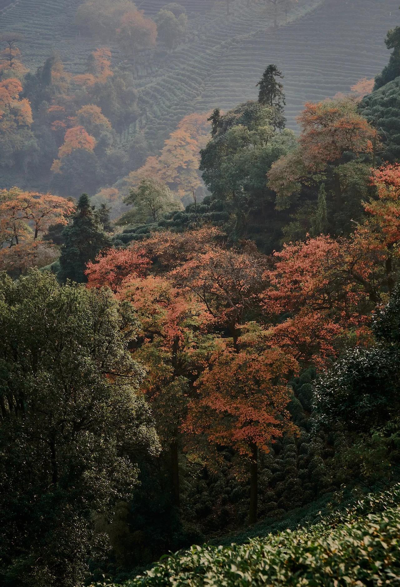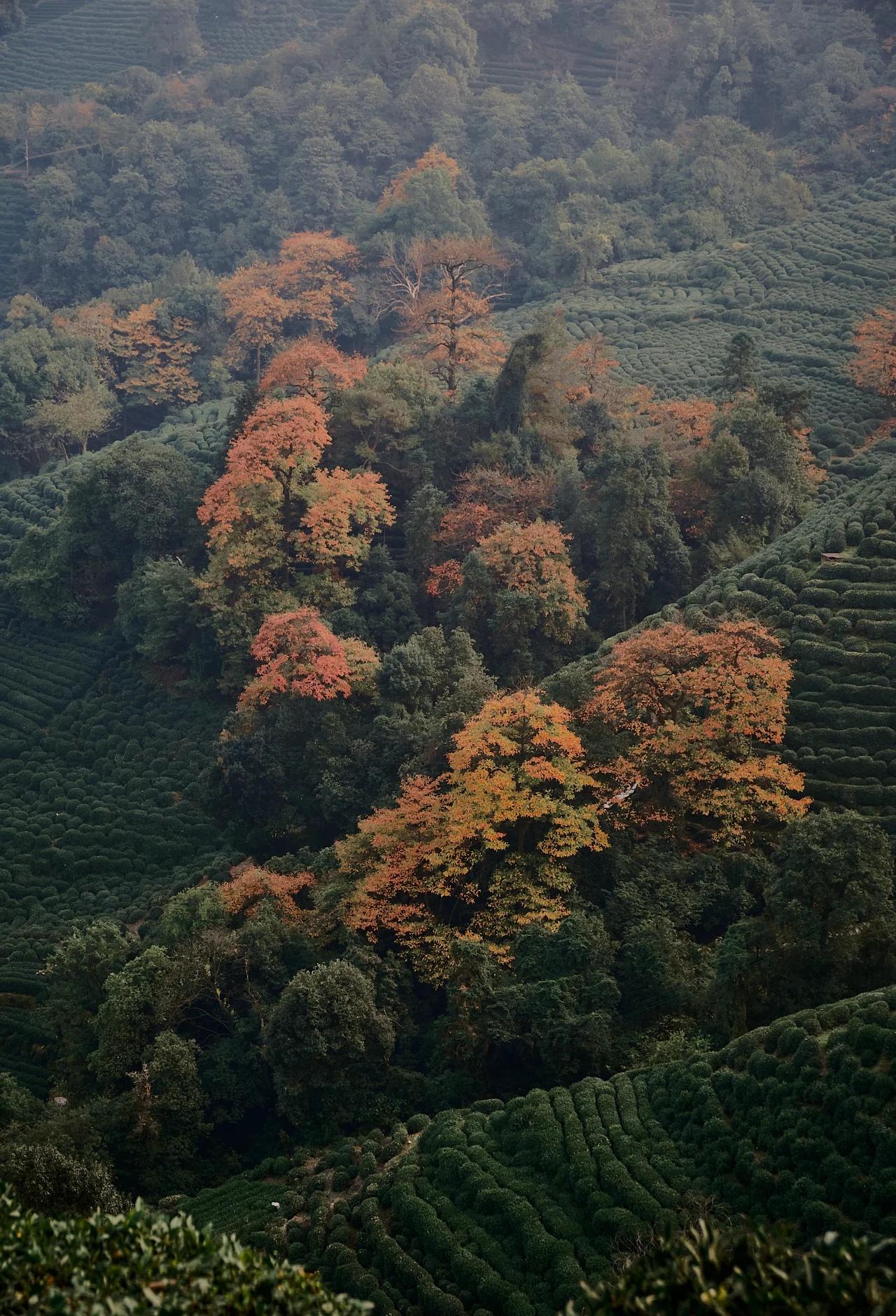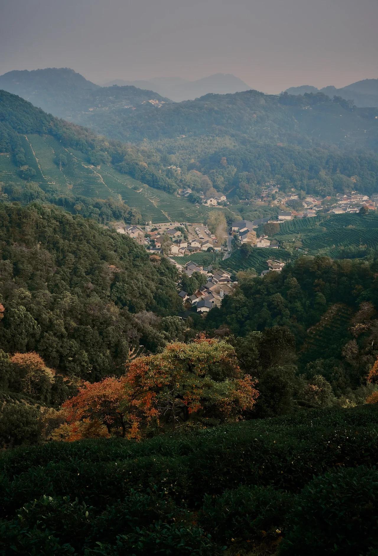 十里琅珰秋天最喜欢的一段路 从梵音亭到三岔口 俯瞰茶山、村庄与各色树木 一些路段