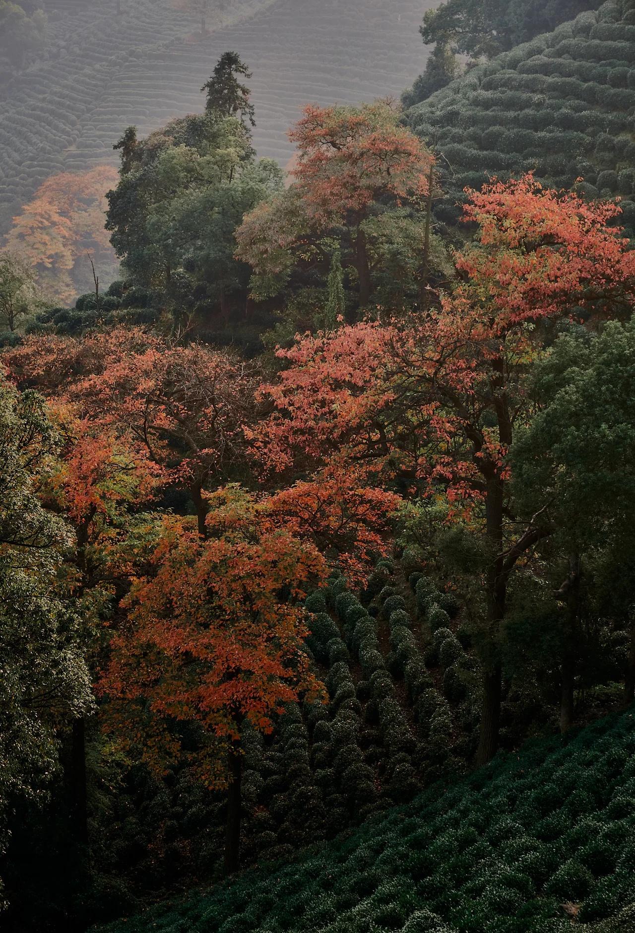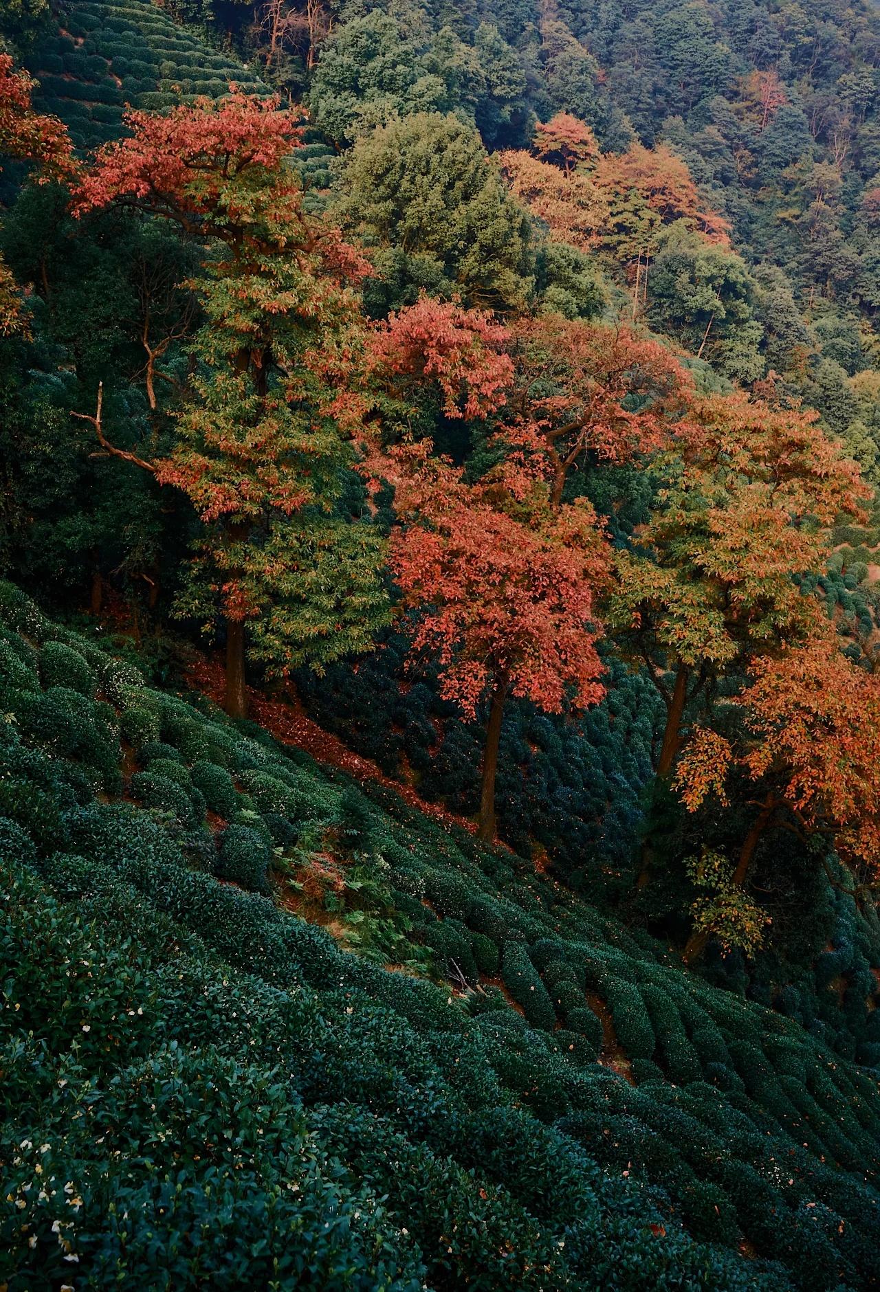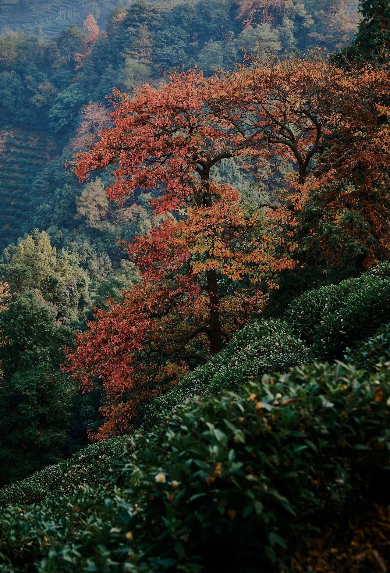 十里琅珰秋天最喜欢的一段路 从梵音亭到三岔口 俯瞰茶山、村庄与各色树木 一些路段