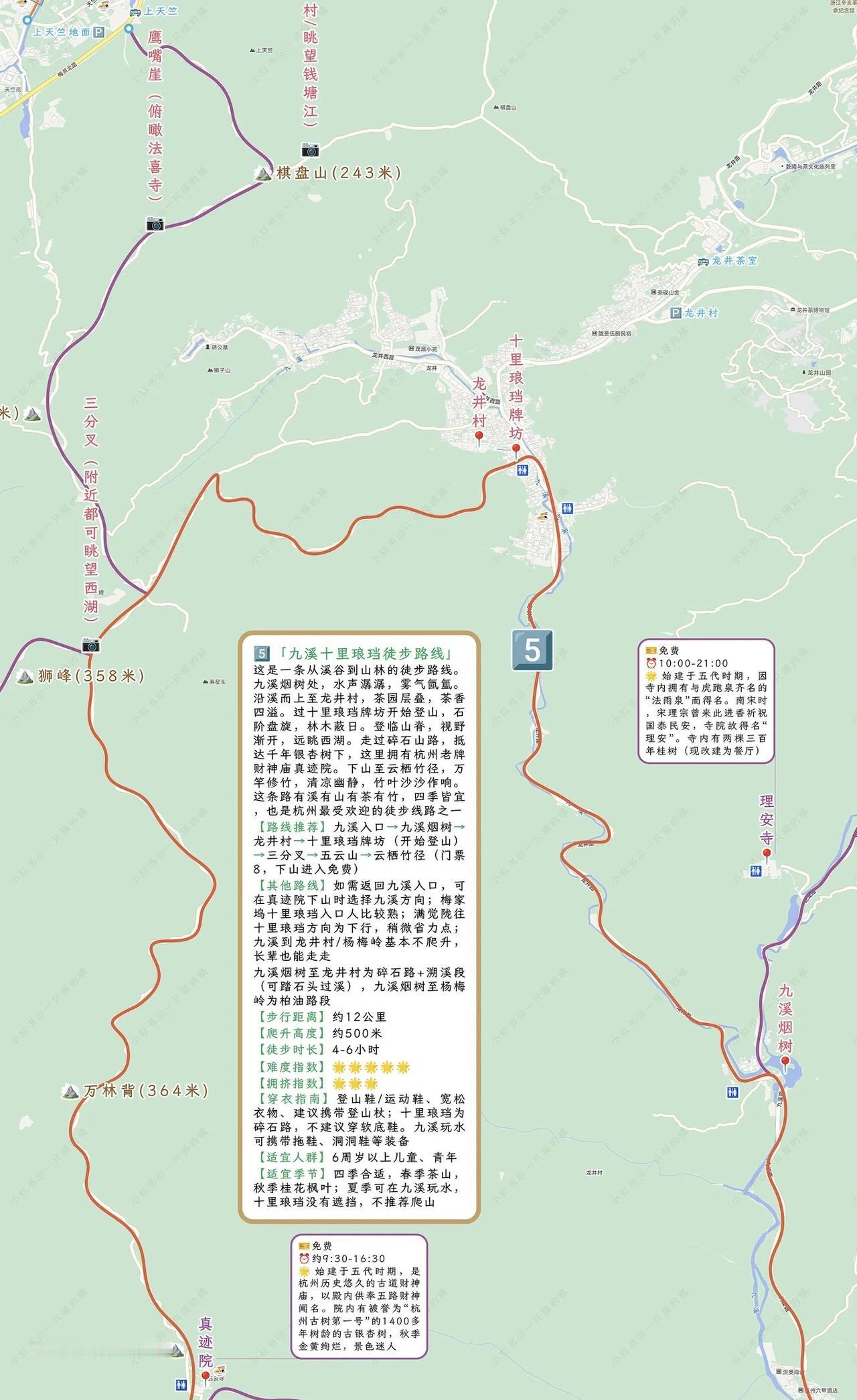 十里琅珰秋天最喜欢的一段路 从梵音亭到三岔口 俯瞰茶山、村庄与各色树木 一些路段也可以眺望西湖 (雾霾小的天气更合适) 可以上十里琅珰的入口比较多 龙井村比较常走 也可以从梅家坞上,人会少很多 不过上山中途景色一般 想省点力可以从法喜寺对面的山上 山脊基本都是石子路 穿硬底的鞋比较方便 体力一般的朋友可以带个登山杖 山上除了真迹寺那边 是没有洗手间的 所以上山前最好解决一下 饮料之类也是真迹寺有 路上可能遇到有人摆摊 *图片是去年11月拍的,有调色 实际景色也很漂亮,可以搜搜 杭州旅游攻略 秋季去爬山 登山看秋天的美景 徒步路线 杭州徒步 龙井村 十里琅珰 摄影 山里的秋天
