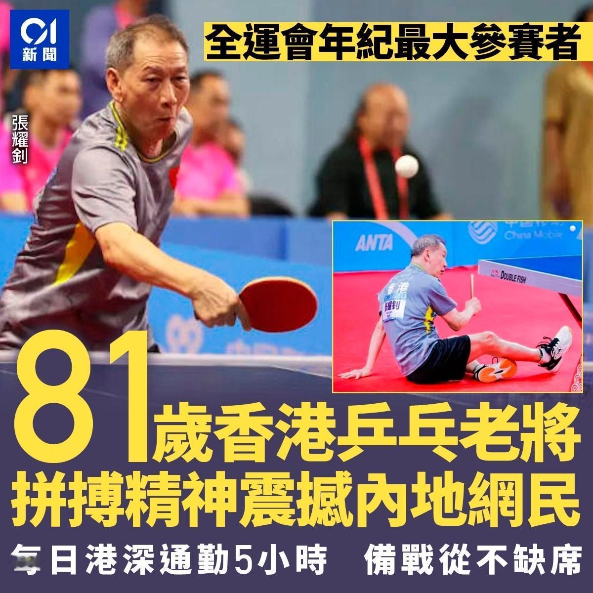 今年81岁,全运会年纪最大的运动员来自香港的张耀钊。66岁首次接触乒乓球运动,从此一发不可收拾,成为退休后最大的爱好,这一坚持就是15年,每周练习4-5次,雷打不动。在从众多乒乓球爱好者中脱颖而出,代表香港出战全运会比赛,经历堪称非常励志,网友说这才是狮子山精神。全运会香港
