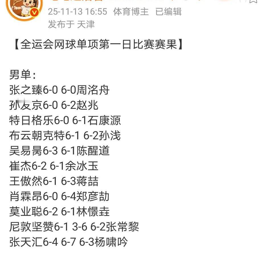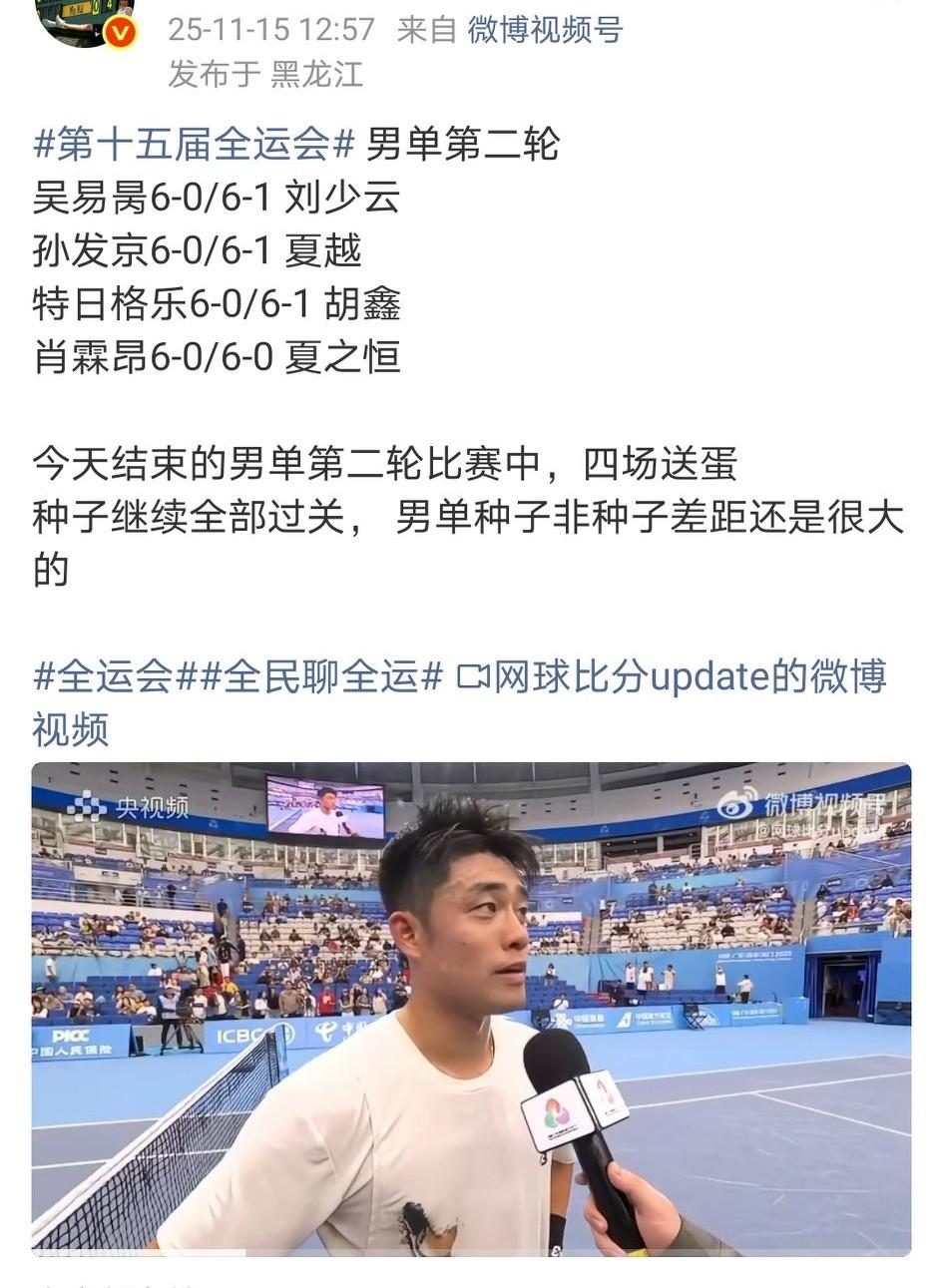 全运会网球,种子选手与非种子选手的差距有点大,这两轮出现了几个蛋?