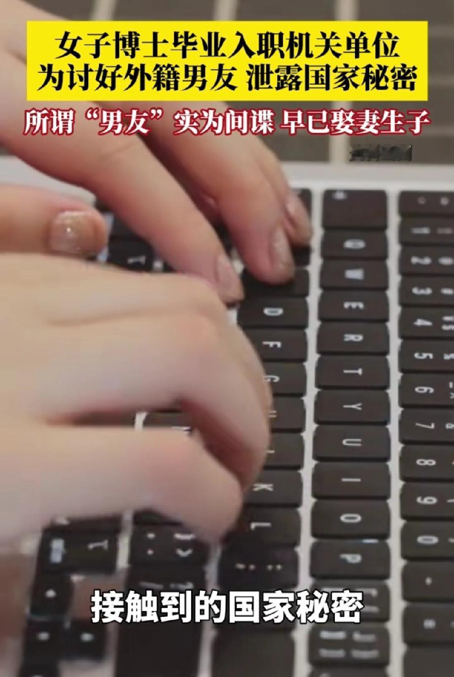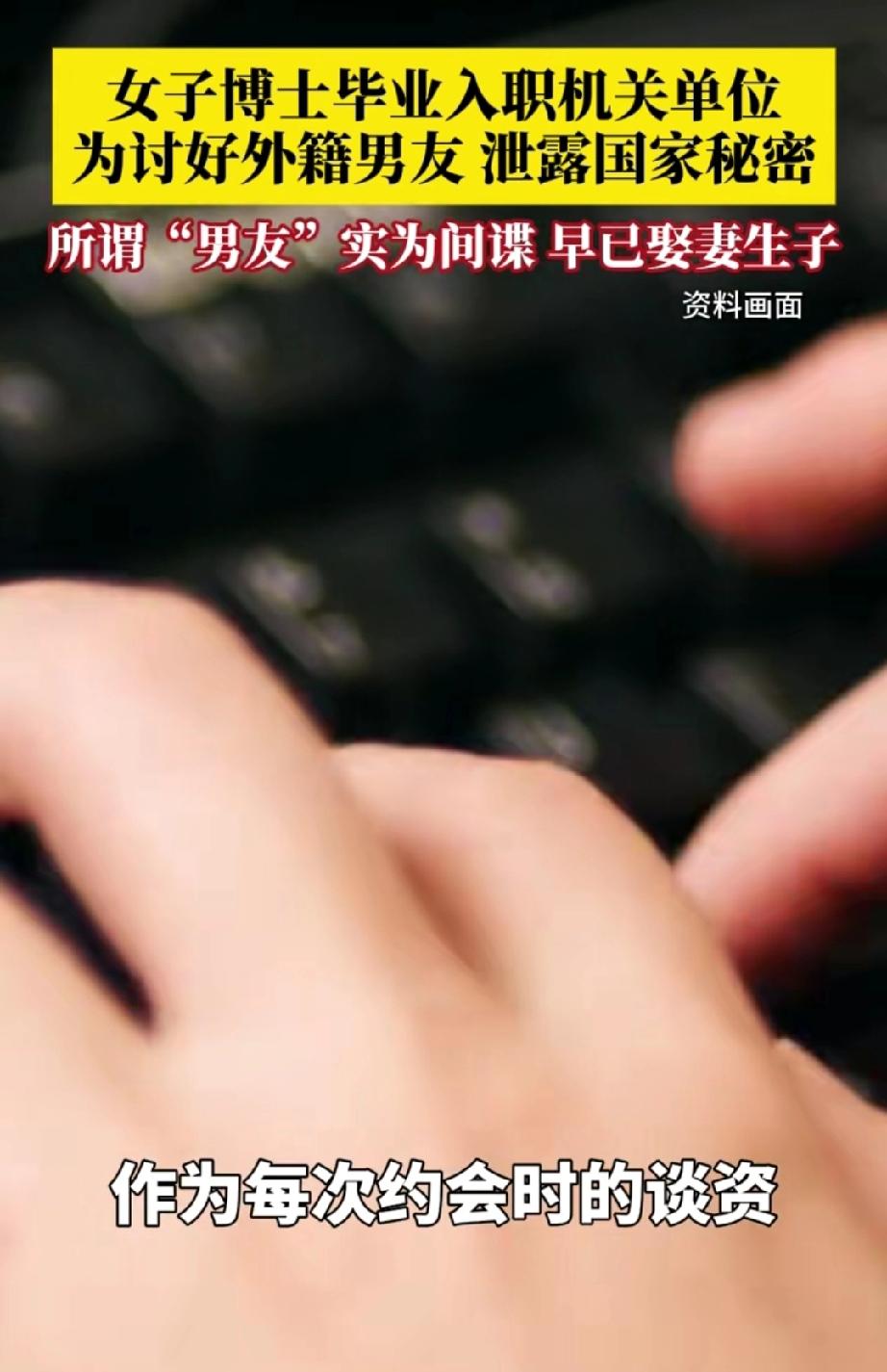 女子博士毕业后进入某单位机关工作,在工作中认识了某使馆男性工作人员。两人开始交往,男友经常跟女子打听她工作上的事。只要女子不跟他谈工作上的事,男友便冷落、怠慢女子。 女子为了讨好男友,经常去跟别人打听一些工作上的事,作为与男友的谈资。 没想到,不久之后女子被公安机关抓获,并且得知所谓的男友,是一名间谍,并且早已娶妻生子。 女子对自己的行为后悔不已,可一切都晚了,她的行为已经踩了法律红线。 作为一名博士,学会了最高的技术与知识,却没学会自我保护的功能,能没有爱国意识。 拥有博士学历的女性,毕业时大部分已经步入三十岁,女子是恨嫁?是想有个家?还是想心灵有个归属,才会去讨好男朋友吗? 也许她只是一个“恋爱脑”! 大河有水小河满,国家富强了,我们每个小家才能安居乐业。 爱国不是空洞的口号,而是体现在对这片土地的深情、对同胞的关怀,对他国的戒备之心。 我们在生活中,工作时,时刻保持警醒,既是守护家国安宁的底线,也是每个公民不可推卸的责任与义务。 来源:第1眼新闻