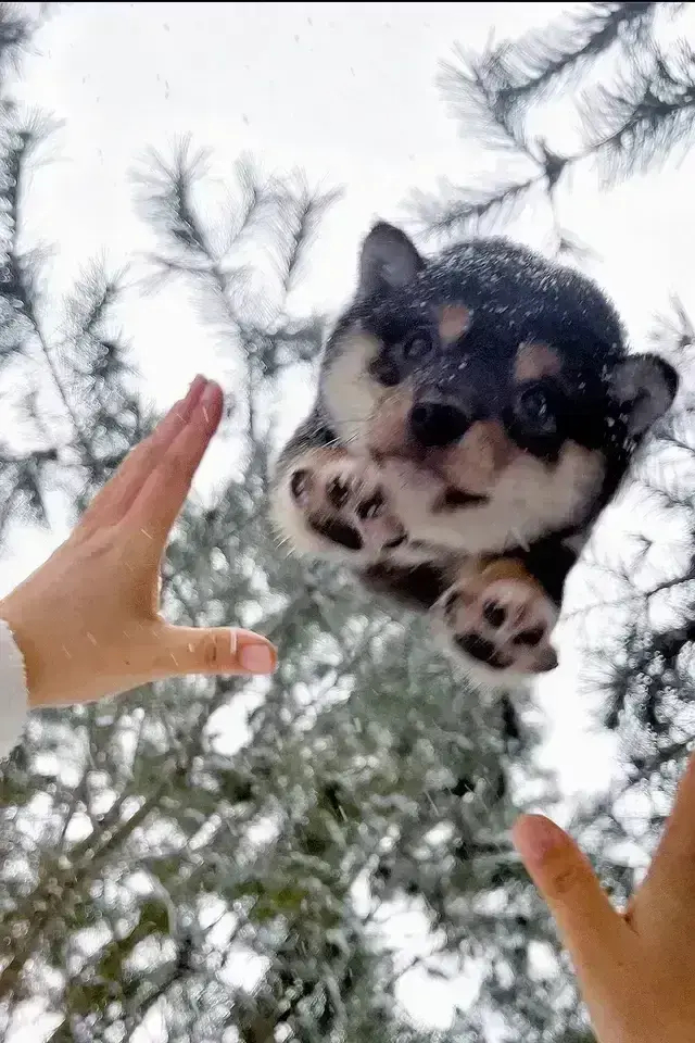 从树梢头,跳到主人的怀抱里,小狗狗这要有多信任,才能做得到啊…