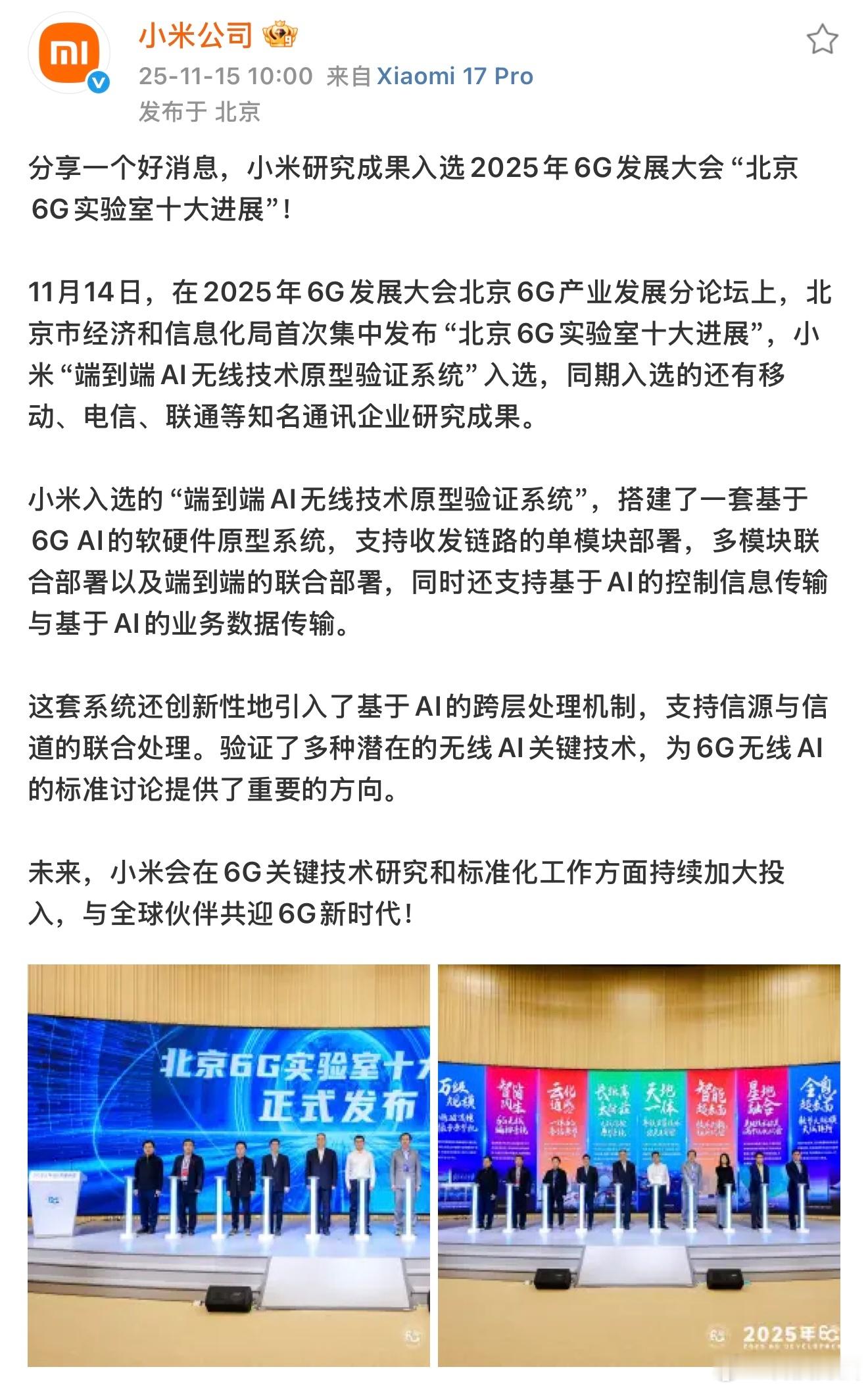 小米还有多少惊喜是我们不知道的,不声不响在6G领域搞出了名堂。能和移动联通这些老牌运营商一起入选十大进展,“端到端AI无线系统”确实有点东西。把AI塞进了通信底层,这不就相当于给未来的网络装了大脑。以后传输数据可能像有个智能管家在帮你调度,不仅更快还会自己优化路线。狗蛋觉得小米是铁了心要摆脱“组装厂”标签。从造车到6G研发,这种肯在底层技术砸钱的劲,比堆参数卖手机更有长远意义。虽然6G离咱们还远,但谁能不期待未来6G能和智能生态联动,带来更多的科技改变咱们的生活呢。