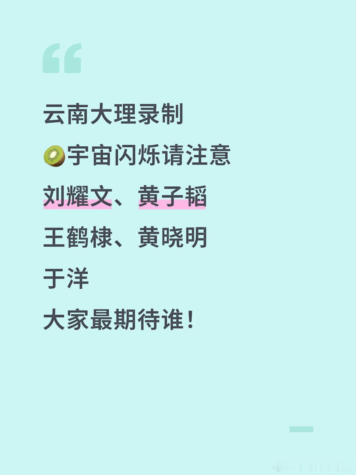 宇宙闪烁请注意录制啦云南大理录制🥝宇宙闪烁请注意刘耀文、黄子韬王鹤棣、黄晓明于洋大家最期待谁!宇宙闪烁请注意‖