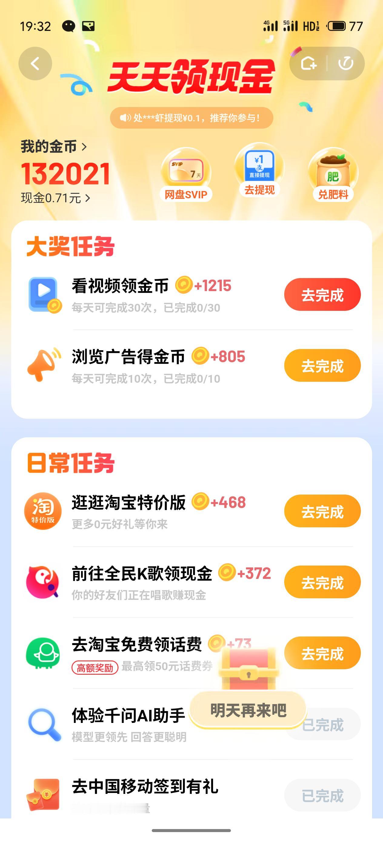 这个界面很神奇 天天领现金 很难找到入口 到今天也没有把握一下子找得到 只能判定