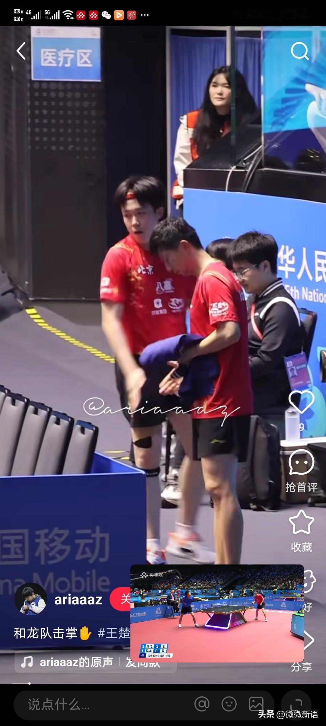 王楚钦今晚继续打男团的一单。 下午王楚钦刚刚打了男单半决赛,晚上就又要打一单了,真的是铁血一单。晚间的男团比赛,北京队对阵上海队,上海队樊振东休息,赵子豪打一单。 在刚刚的比赛中,第一盘男双的比赛马龙/黄友政是2-3输给了许昕/周恺,第二盘王楚钦3-0赢了赵子豪,两个队的大比分来到了1-1。在局间的时候,看到楚钦笑了,关教练把水递给楚钦,他喝完水继续上场打比赛,第三局的时候两个人比分咬的紧,但是关键分王楚钦拿下了。 昨天的男团比赛中,黄友政打三单,今天换马龙打三单了,第三盘比赛马龙是对阵周恺,虽然第一局比赛龙队输了,但是他后面是连拿三局,为北京队再赢一分,北京队大比分2-1领先。就是今晚五号台是一点声音也没有,好像在看哑剧一样,连击球的声音都听不到。 今天北京队抽到的是客场,第四盘比赛是赵子豪对阵黄友政,第五盘是许昕对阵王楚钦,希望只打到第四盘,让楚钦回去好好休息,明天还有铜牌赛。
