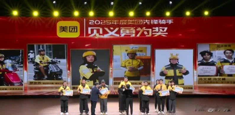 骑手颁奖的视频,瞬间让我破防了! 平时总见骑手们风里来雨里去,递餐时笑着说 “您慢用”,转身又扎进车流里。可谁能想到,这些默默奔波的人,乐于助人的镜头尽那么多,真是件件暖到心里了。 有人落水了,他们看到,想都没想就跳下去救; 看到老人拄着拐杖过斑马线,走得颤巍巍,要么上前扶着送过去,要么直接背他们过去; 甚至遇到起火的危险场面,也敢冲上去帮忙扑火…… 这些事看着是举手之劳,却让我们感受到了最实在的善良。 新闻里说,美团骑手里做过好人好事的,已经有上千人了,好多被帮过的人,都记着这份温暖。 为了这份善意,美团还专门设了长期奖励计划,“好人好事”和“见义勇为” 奖,这些专项奖,最高能拿 10 万,要是遇到重大的事迹,还有额外奖励。 这次在武汉先锋骑手颁奖礼上,其中13位骑手的故事特别突出,站上了“2025美团先锋骑手表彰会的”颁奖台,把这份正能量传给了更多人。 以前总觉得骑手的工作只有辛苦,现在才发现,他们身上的勇敢和善良,比赶路的身影更动人。 而且美团也给骑手们搭好了保障,除了先锋骑手的奖励,还有大病关怀能兜底,早就取消了超时罚款,还帮骑手交社保,提供免费的理发、理疗、咨询,甚至应急救援服务。 这样一来,骑手们给别人送善意的时候,自己也能被好好守护着,多好啊!