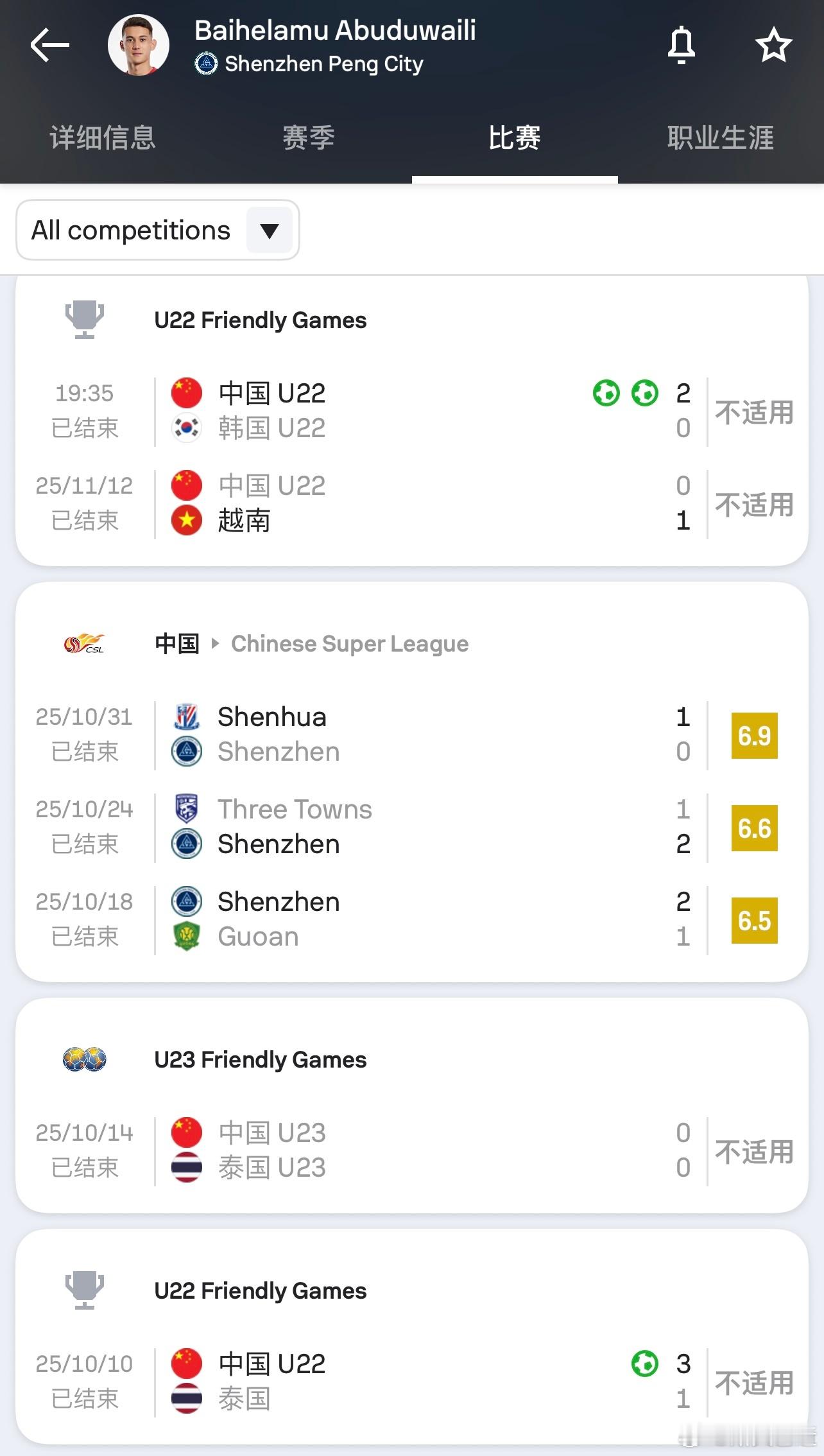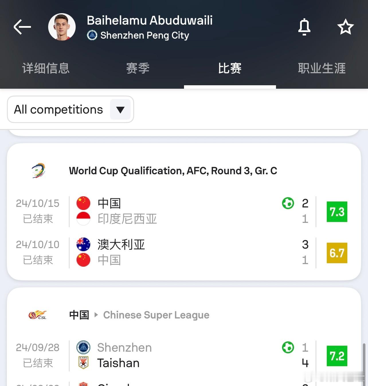 拜合拉木也是真的神人他上一个俱乐部进球还是去年9月份对山东,已经长达一年多、共计20场没进球,本赛季19场0球。但是同期国字号,他共计进了8个。18强赛对印尼破门,U23亚洲杯预选赛4球,U23热身对泰国进球,熊猫杯梅开二度。果然国字号特供前锋。