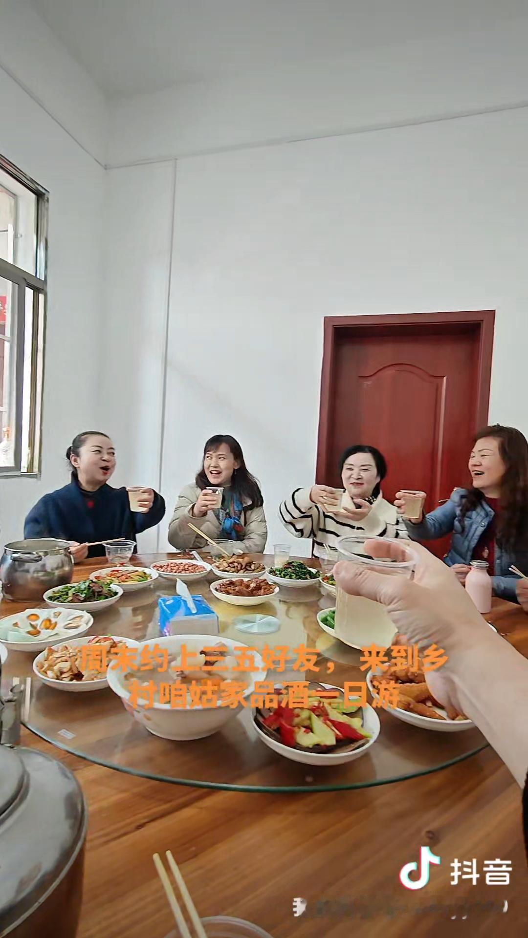 咱姑家的米酒好香! 周末的太阳,跟撒了欢儿似的,晒得人心里暖洋洋的,舒坦极了! 约上八、九位好友,两台车、一脚油门儿踩到底,直奔老家房县孙家湾村——咱姑家! 刚到村口,大伙儿就都按捺不住了,呼啦啦推开车门,直奔咱姑家背后的大菜园子,非要去“接接地气”! 远远就看见,一垄垄大葱和小葱,站得笔挺挺的,绿油油透着股精气神儿,比城里菜市场的排场多了。 同行的老张,指着菜地里笑着喊道:“这就是传说中‘孙家湾的葱’吧!果然名不虚传,比我家娃子还听话!” 大伙儿笑得直不起腰,这话可没毛病——咱房县人都知道的老家“四大宝”,俗话说得好:“九道的洋芋、孙家湾的葱,军店的女(nia)子、爱黄酒!” 咱姑早就在门口候着,手里还擦着围裙,嗓门亮得能传半条村:“可算盼来喽!快进屋,洋芋土鸡汤刚炖好,就等你们了!” 一跨进堂屋,那股香味儿“嗖”地一下、就把大伙儿的魂儿勾住了——砂锅里的洋芋土鸡汤,咕嘟冒泡,金黄的油花花浮在表面,旁边盘子里的爆炒木耳肉丝,红黑相间,看着就下饭。 咱姑拾掇了满满一大桌子的菜,最绝的是那盘嫩白菜炒豆油筋:白菜是早上刚从菜园儿里薅的,脆生生带着露水,豆油筋吸满了汤汁,咬一口满嘴鲜香。 当然,主角必须是咱姑亲手酿的新米酒! 咱姑拎着酒壶,给每个人的杯子都斟得满满当当,清甜的酒香,顺着杯沿儿往上飘,直往鼻子里钻。 米酒倒在杯里,泛着淡淡的米黄,抿上一小口,甜丝丝的爽口不齁人,还带着点儿米酒独有的微醺,从舌尖儿暖到心坎儿里。 咱姑一边往大伙儿碗里添菜,一边念叨:“你们可劲儿造,菜园里的菜管够,米酒也管够!” 大伙儿边吃边聊,筷子抢得飞快,连鸡汤都喝了个底儿朝天。 酒足饭饱,小院儿里立马摆开了“战场”,一桌搓麻将“卡五星”,一桌甩扑克“掼蛋”。老张手气背得离谱,输了就拍着桌子嚷嚷:“都怪姑家米酒太香,喝多了影响我出牌思路!” 惹得大伙儿笑作一团; 姑坐在旁边剥花生,时不时凑过来指点两句,比自己打牌还上心。 阳光洒在院子里,笑闹声、打牌声混在一起,热闹得跟过年似的。 不知不觉就又到了晚饭时间,咱姑端上了用米酒糟醒发的老面馒头,一个个白白胖胖、暄软蓬松,掰开的瞬间,米酒的清香混着麦香直窜出来,蘸点儿咸菜都好吃! 而且又是满满当当、一桌子的新鲜小菜,大伙儿再把米酒斟满,边吃、边喝、边回味下午的牌局,越聊越投机。 临走时,咱姑早把新酿的米酒装好了壶,硬往每个人手里塞:“回去慢慢儿喝,下次再想吃酒酿馒头、尝尝地里的新鲜小菜,想打牌了,欢迎常来!” 好友们拎着沉甸甸的酒壶,依依不舍,一步三回头,嘴里不停念叨“下次一定来”。 坐在车里,米酒的香味还在鼻尖绕,心里暖乎乎的。 这美味的米酒、地道的农家菜,藏着咱姑的热情、朋友的热闹,还有乡下日子的踏实安逸。 咱姑家酿的手工新米酒,是真香啊,下次可得早点儿来,争取把咱姑家的大酒缸,全都喝空! 上联:冰天雪地送冬去,请您来下联