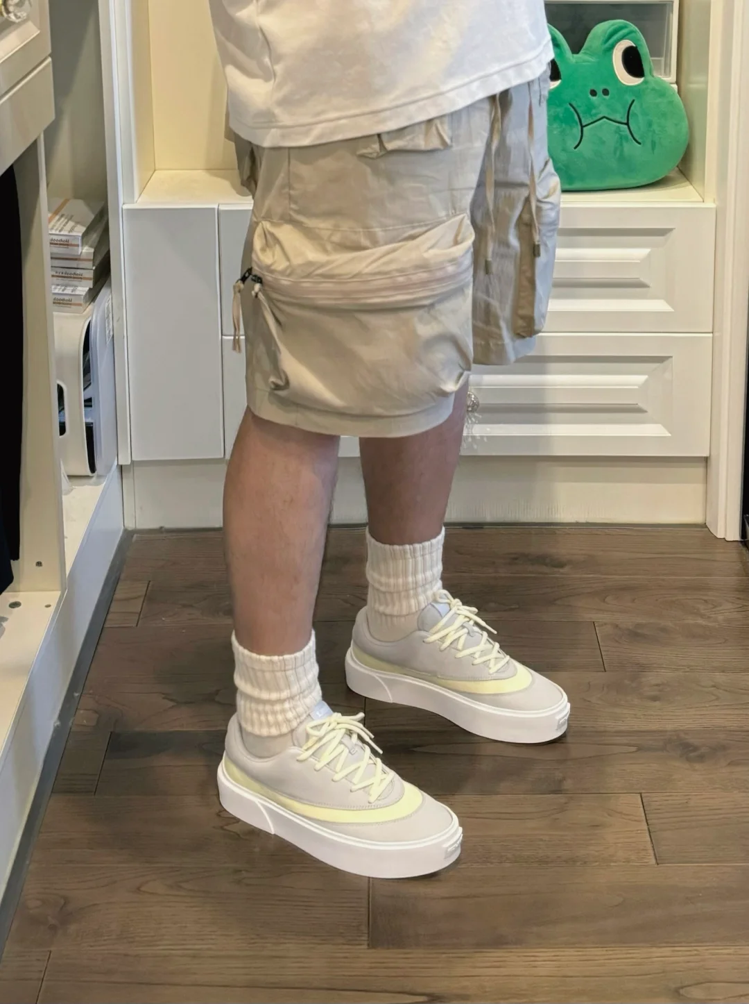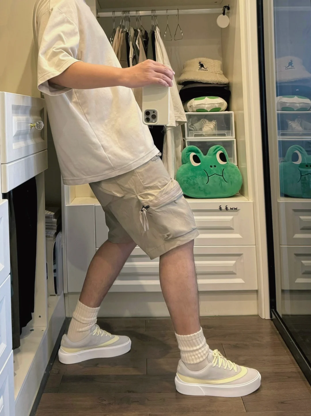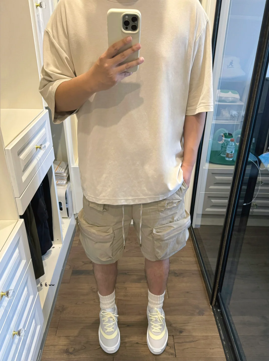 -卡其色系,耐看的穿搭色调,也很适合春秋季,本期用米灰色来配合,旧旧的感觉复古十足 . -简洁的体恤,工装的短裤,大口袋设计点很醒目,再踩一双轻薄的硫化鞋,适配立秋的气候 . —————— . ✏️本人178cm75kg 球鞋尺码265mm(正常EU42) . 💭以上均为我个人观点,不喜勿喷,欢迎讨论。