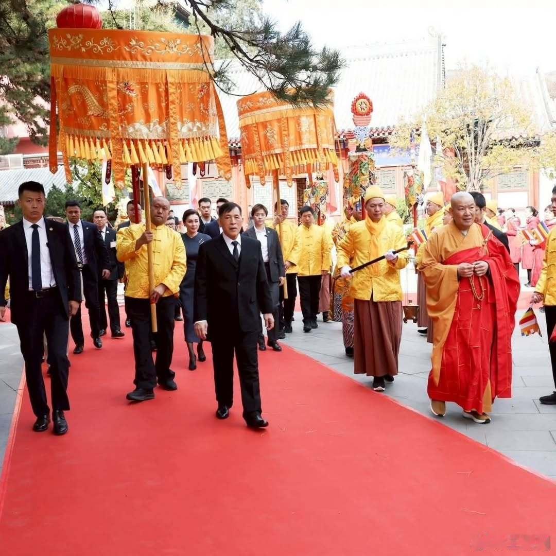 11月15日,泰国国王和王后参观北京灵光寺。位于北京市石景山区翠微山东部西山八大处,是一座1200多年历史的佛家古刹。