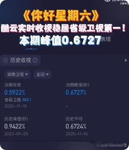 《你好星期六》收视稳居第一!酷云0.6727的峰值,这热度没谁了~