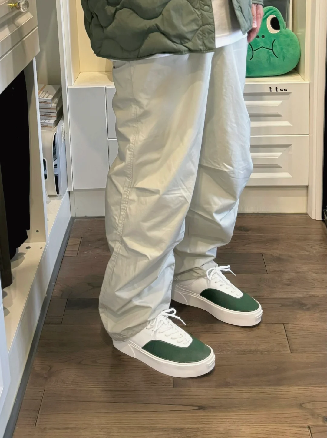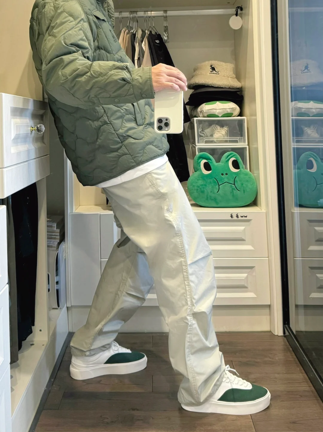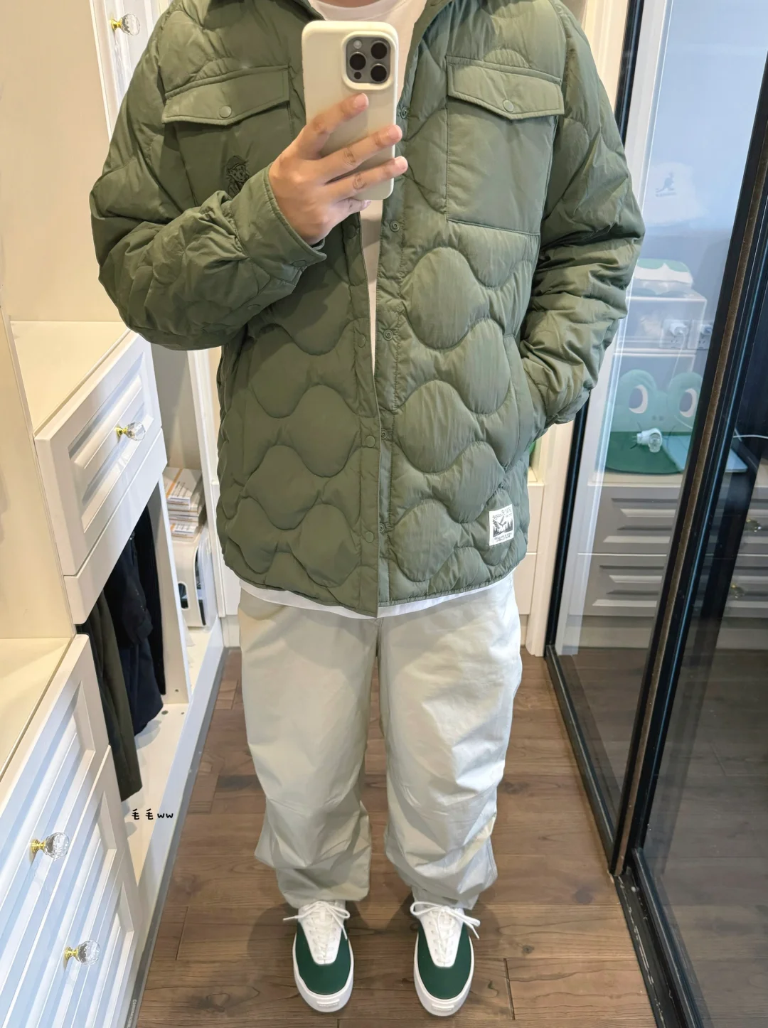 -薄款菱格的绗缝,不管是棉质还是羽绒,秋冬季出场率都很高,喜好日系搭配的选择 . -本期搭配了一套白绿组合,高饱和度大洋绿,灰白色内搭与降落伞裤,整体干干净净 . —————— . ✏️本人178cm75kg 球鞋尺码265mm(正常EU42) . 💭以上均为我个人观点,不喜勿喷,欢迎讨论。