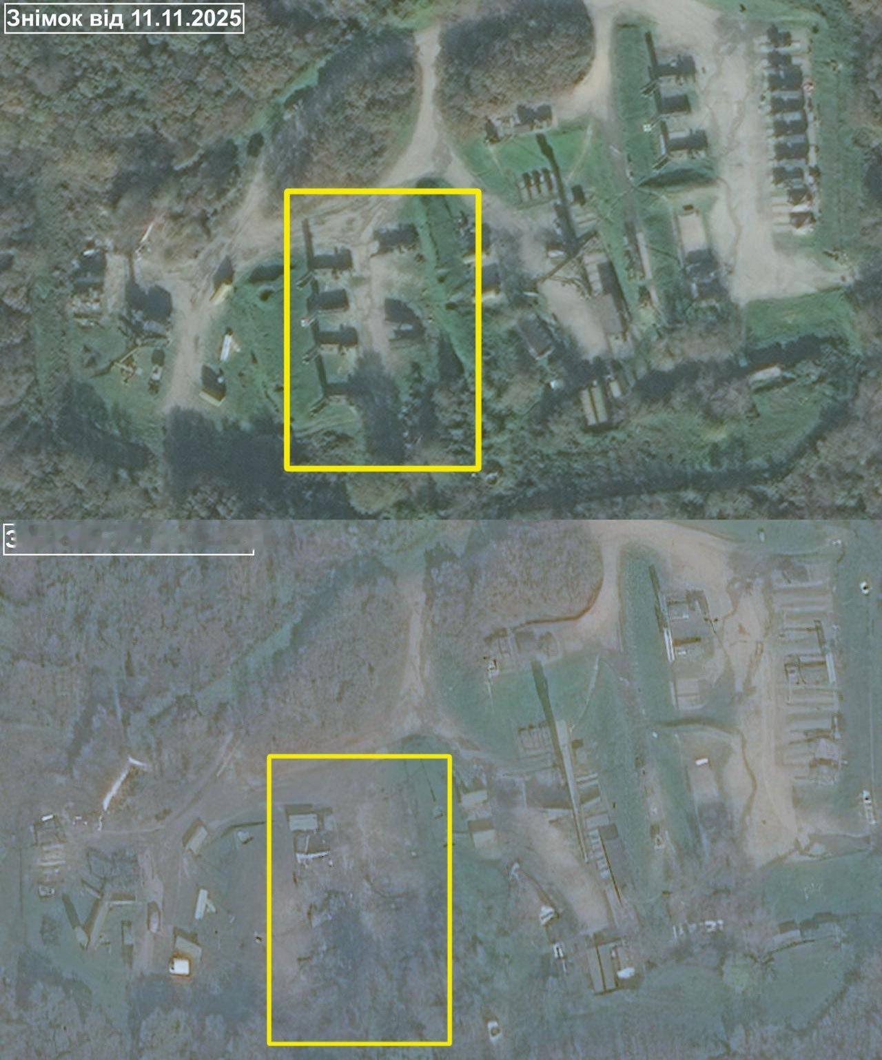 首张关于俄罗斯在新罗西斯克的S-400阵地遭受袭击后果的卫星图像。 从可见的损坏情况来看,袭击发生在标有黄色的区域。