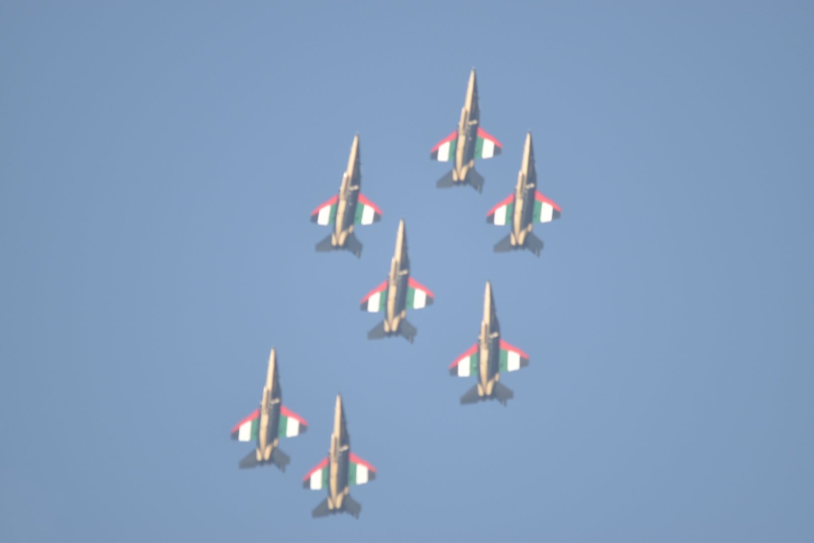 阿联酋空军骑士特技飞行表演队驾驶L-15教练机进行飞行训练,L-15这个涂装还真是漂亮,不知道啥时候悄悄咪咪的交付了。阿联酋空军骑士特技飞行表演队是阿联酋于2011年成立的空军特技飞行表演队伍,采用七机编队形式,之前使用的是意大利制造的MB-339A教练机。该表演队以惊险动作和四色彩烟为特色,招牌动作为空中绘制阿联酋国旗图案,机身采用黑金色涂装并带有国旗标识,被阿联酋人称为“国宝级”航空表演团体。