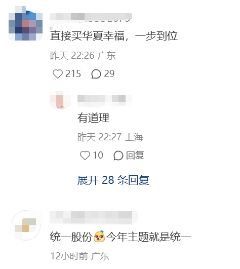 还有股民再进一步:合富中国步步高,人民同泰多福多,祝祖国安泰统一,华夏幸福。
