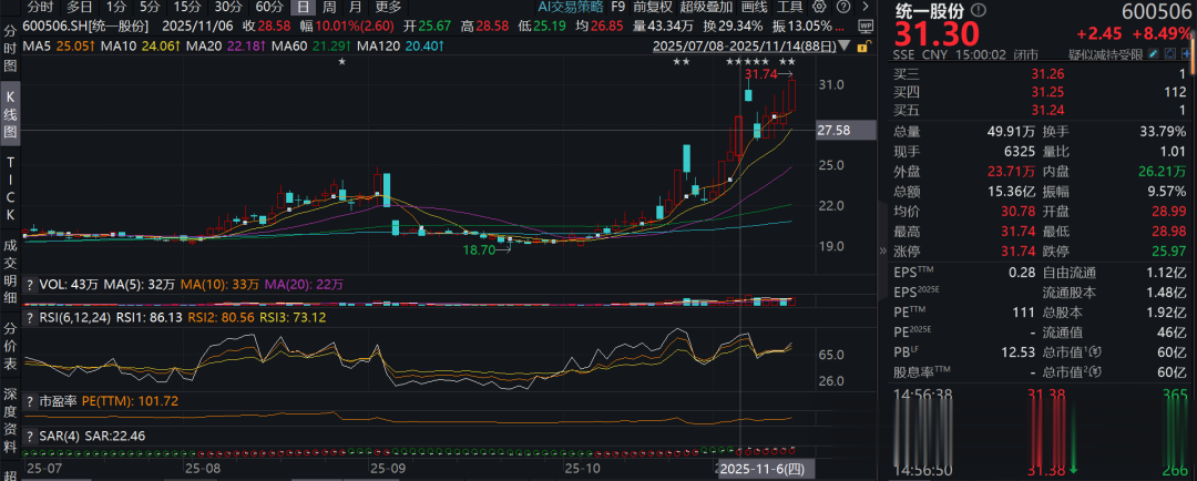 还有回归概念火热,股民开始炒作统一股份,近期统一股份多次上演涨停,11月涨幅近40%。不过,统一是一家石化公司,三季度业绩也不错。
