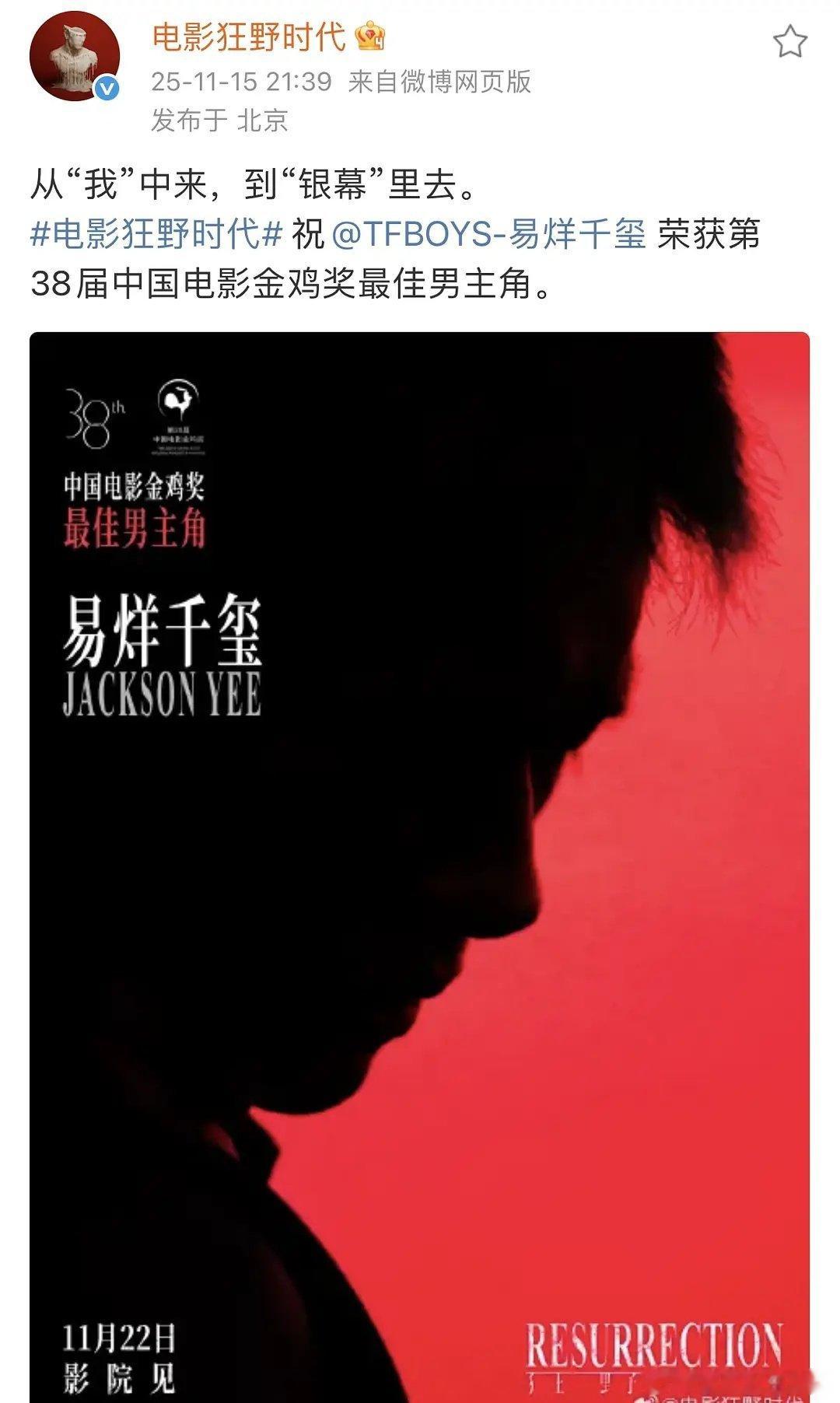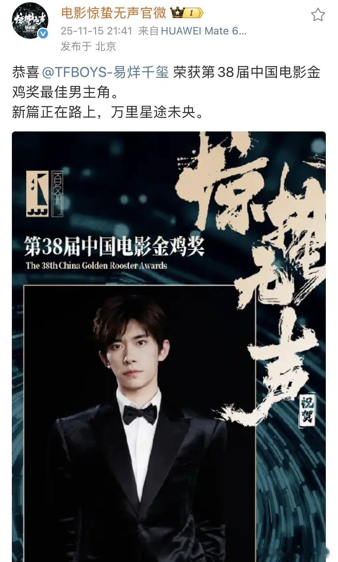 有作品就是好啊,千玺的待播电影都来给千玺发祝贺了恭喜易烊千玺,首位00后金鸡影帝,易烊千玺金鸡奖最年轻影帝